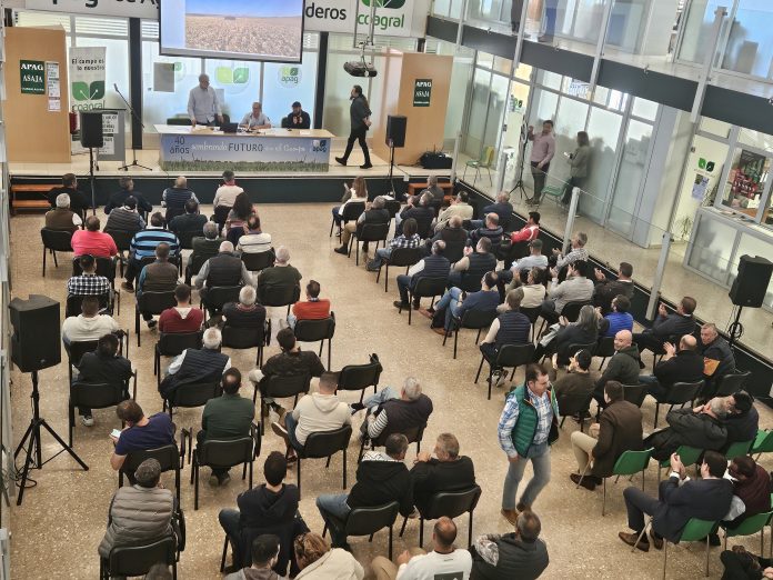 Entre los asistentes, un nutrido número de agricultores jóvenes interesados por conocer el valor de este tipo de siembra a través de las charlas que se han ofrecido, además de poder ver in situ, en la sede de APAG, donde se ha celebrado la jornada, una exposición de maquinaria que se utilizar para ello.