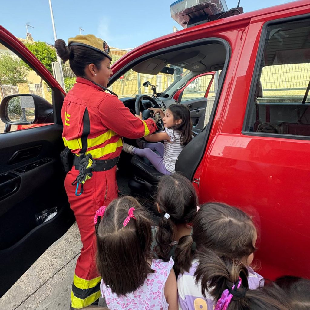 Todos, desde Infantil hasta 6º de Primaria, han ido pasando por la exposición de equipos y vehículos que se ha desplegado en el patio del centro.
