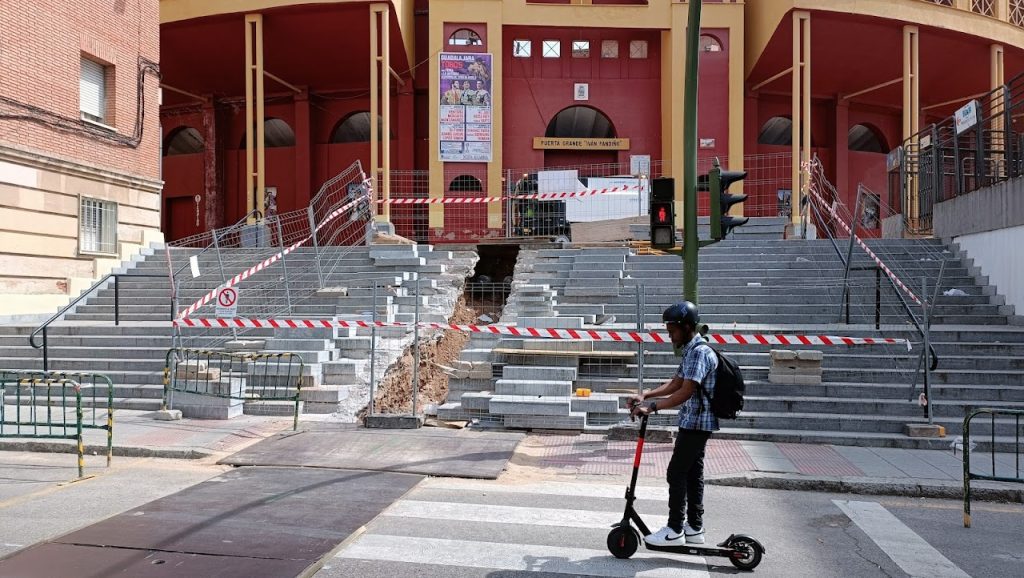 Impresionante la imagen que estos días pueden ver los viandantes por Fernández Iparraguirre, a la altura de la Plaza de Toros. De nuevo, la empresa Red de Calor vuelve a hacerse notar con sus zanjas en la ciudad de Guadalajara. En este caso, sus trabajos han hendido por la mitad la escalera de acceso al coso taurino, dejando al descubierto su interior, a la espera de que se puedan reponer los escalones, cuando se termine la acometida.
