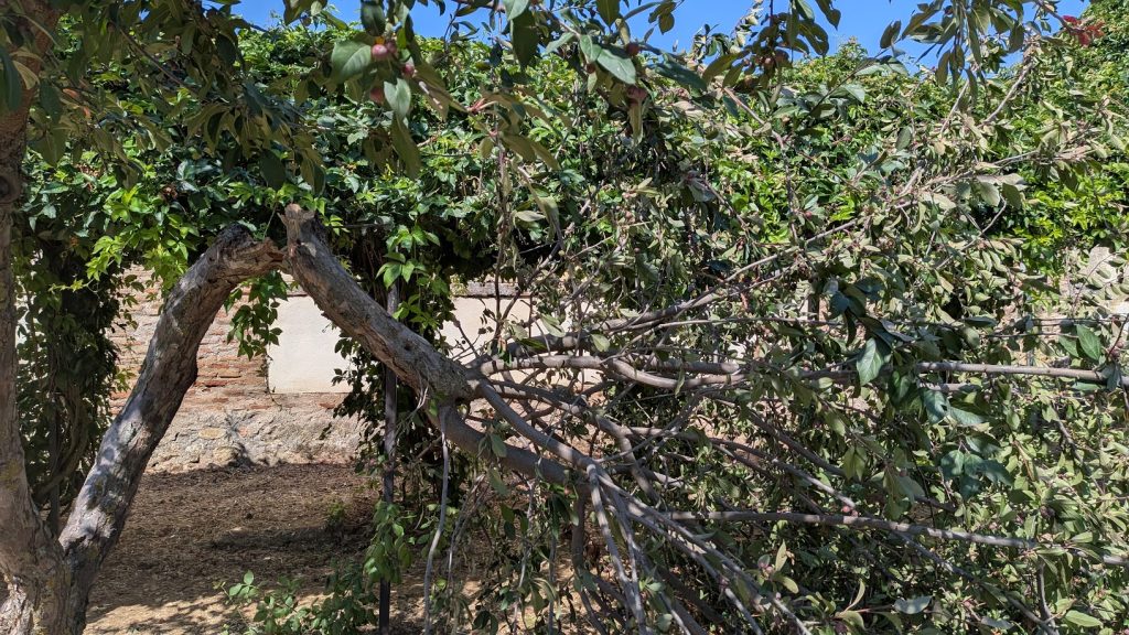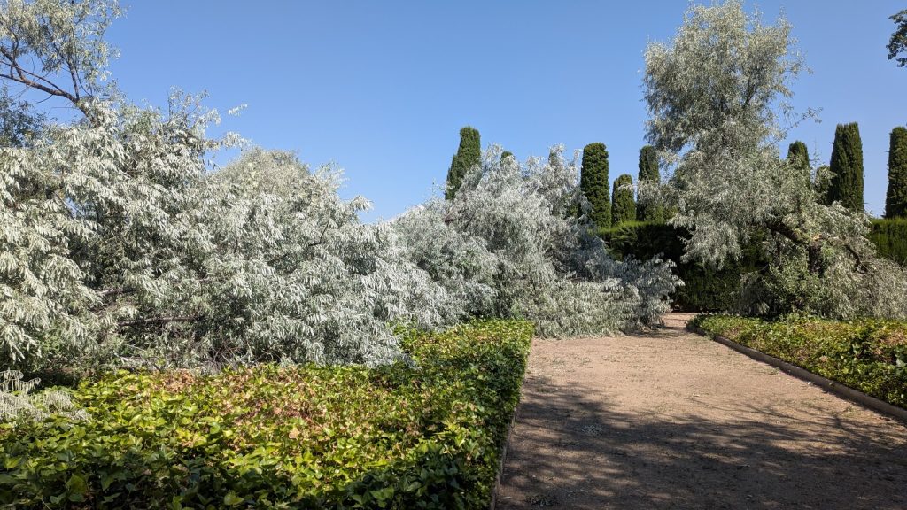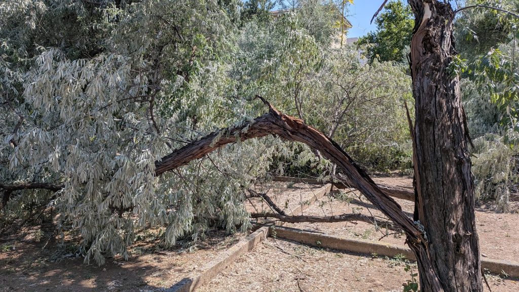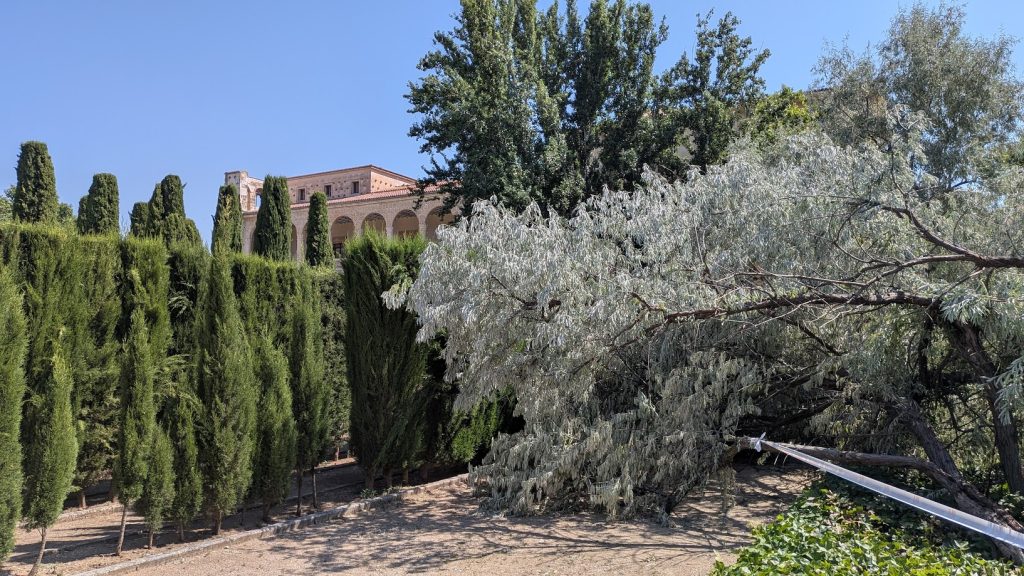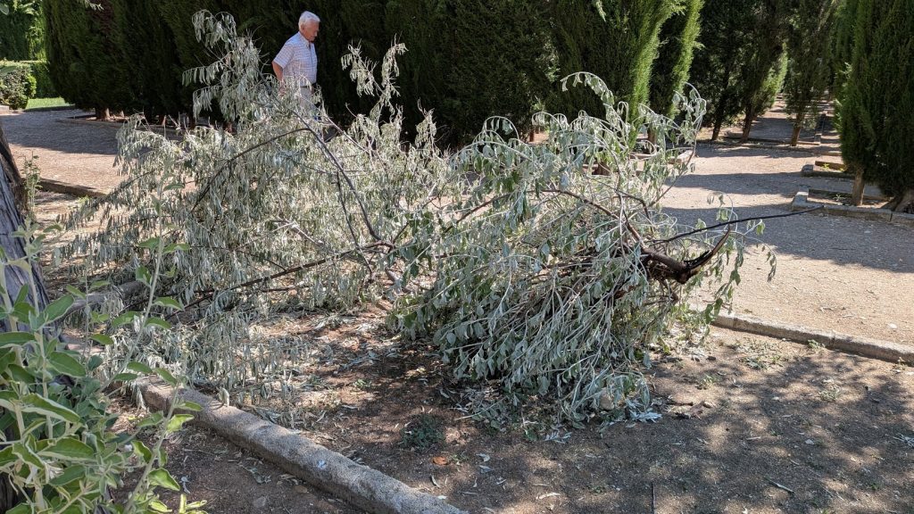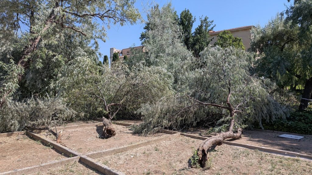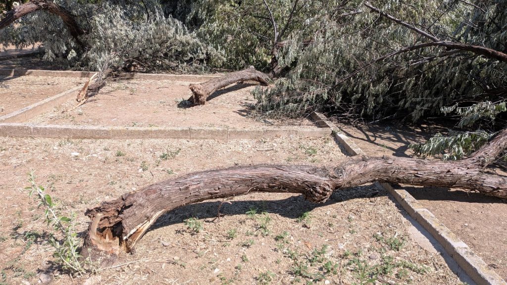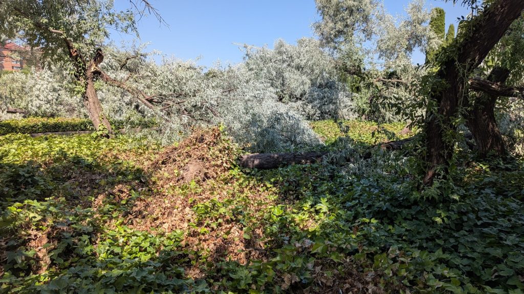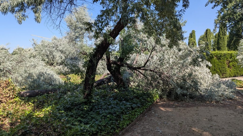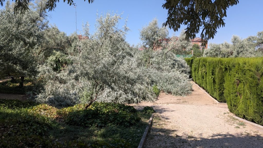 Este lunes todavía seguían por el suelo árboles del paraíso y manzanos silvestres, con troncos tronchados y un espectáculo poco digno de ver.