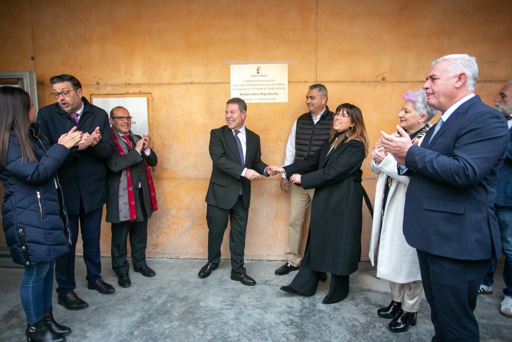 Junto al consejero de Educación, Cultura y Deportes, Amador Pastor, el jefe del Gobierno castellanomanchego presidía este lunes el acto de reapertura del colegio rural, que había sido clausurado hace una década por su antecesora en el Ejecutivo regional, María Dolores de Cospedal.