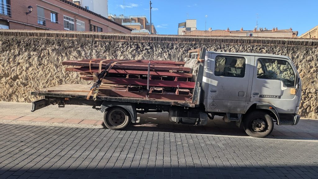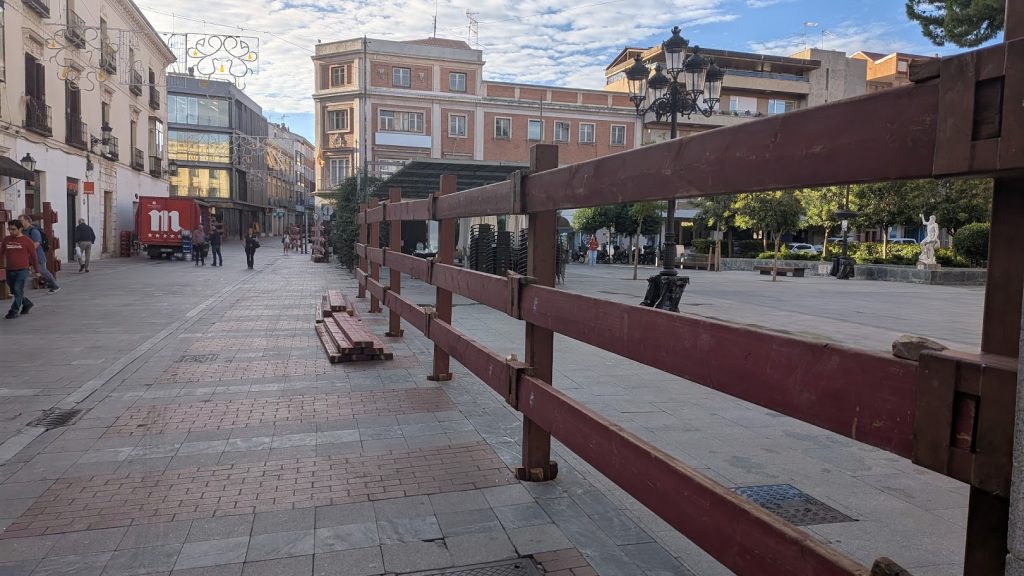 El martes, 9 de septiembre de 2025, al final de la mañana, se empezaban a trasladar las talanqueras, para su colocación. En los días previos se habían apilado en uno de los huecos disponibles en la campa del Mercado.