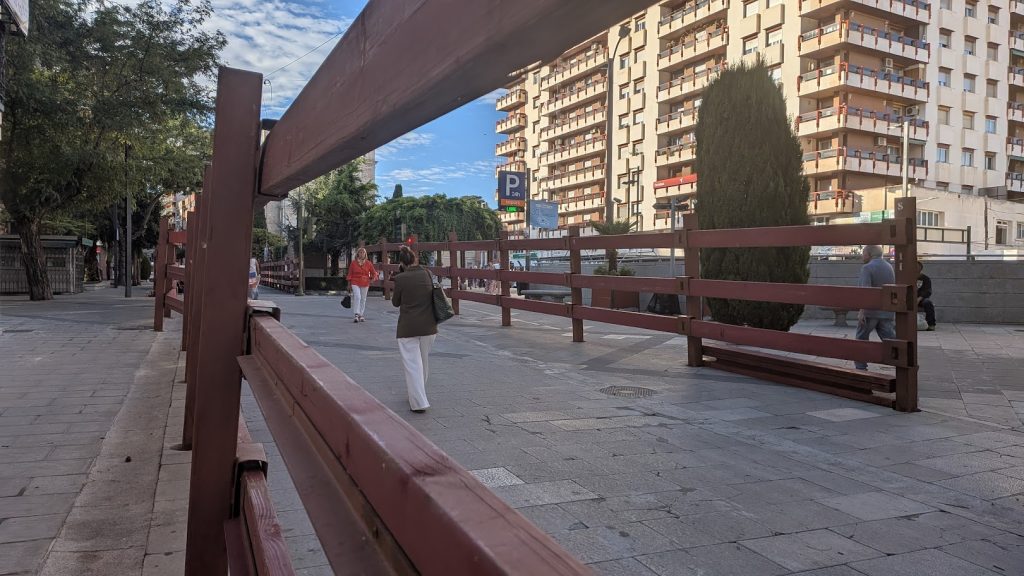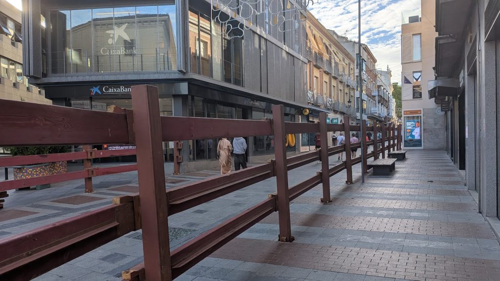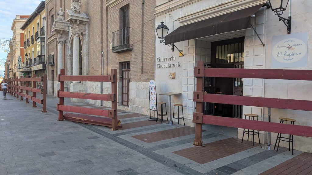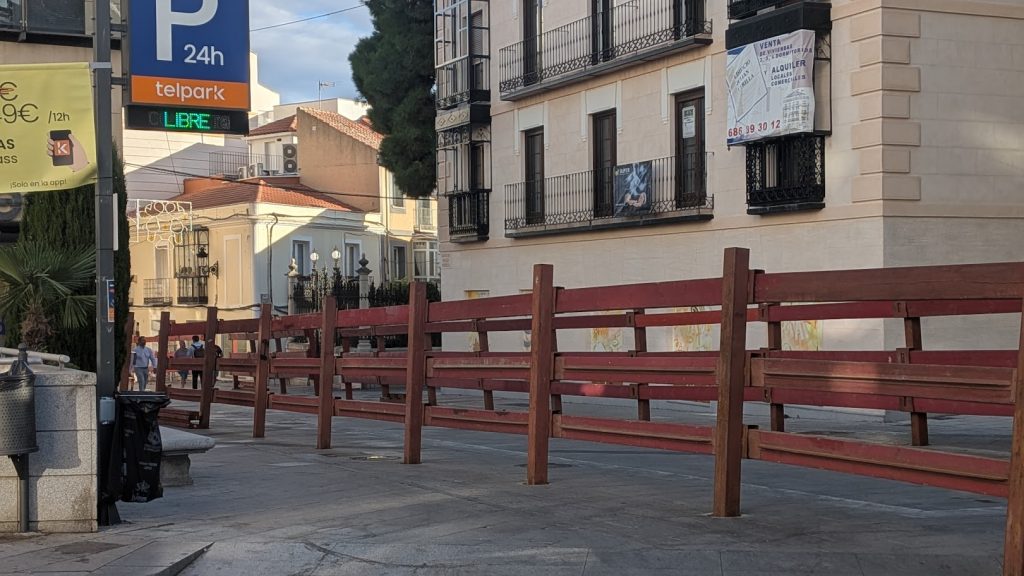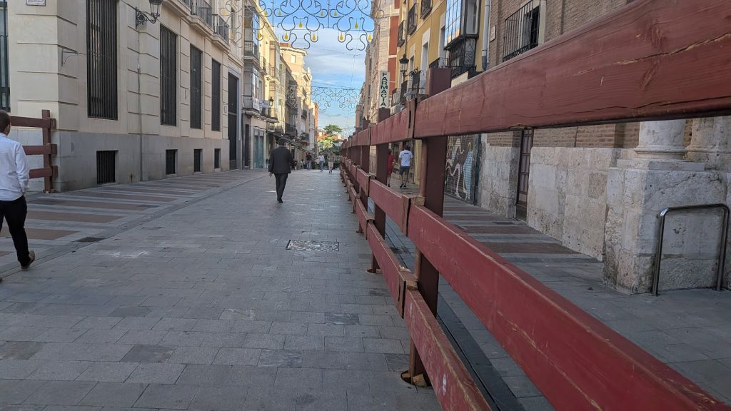 Este miércoles, los viandantes por el centro de la ciudad se han encontrado con casi todo el recorrido ya delimitado por hierros y maderos, como permanecerá hasta pasado el último encierro, que será el 21 de septiembre. Muchos de ellos proceden de San Sebastián de los Reyes, como ya se había anticipado.