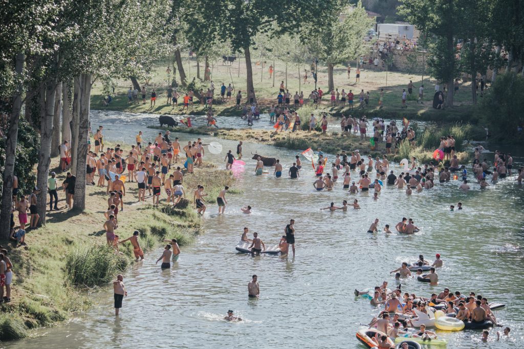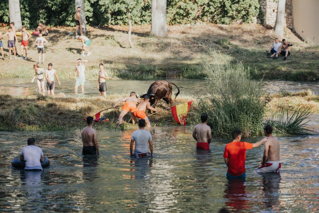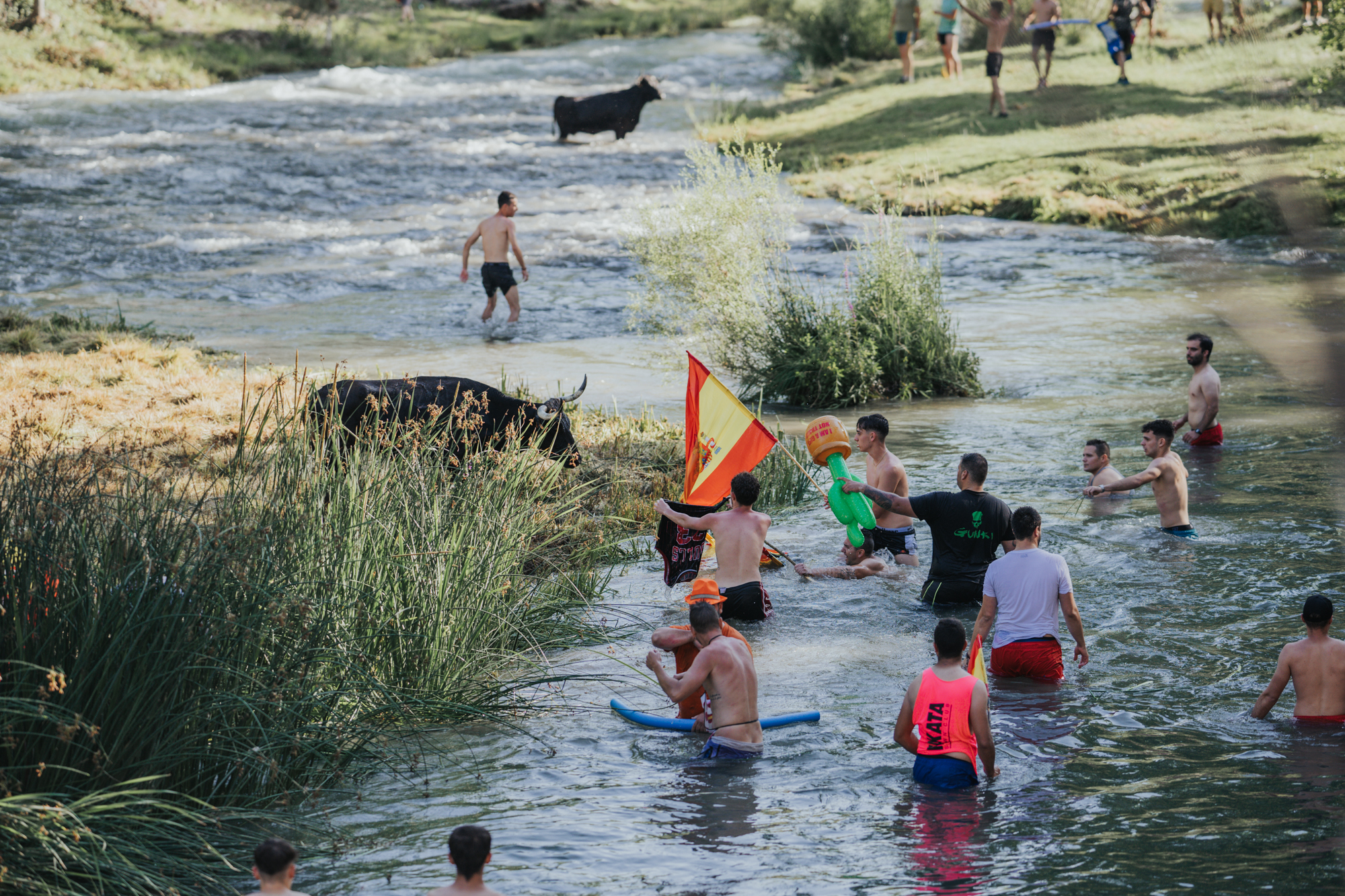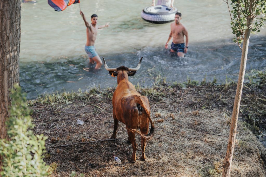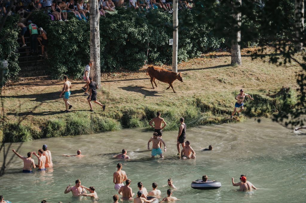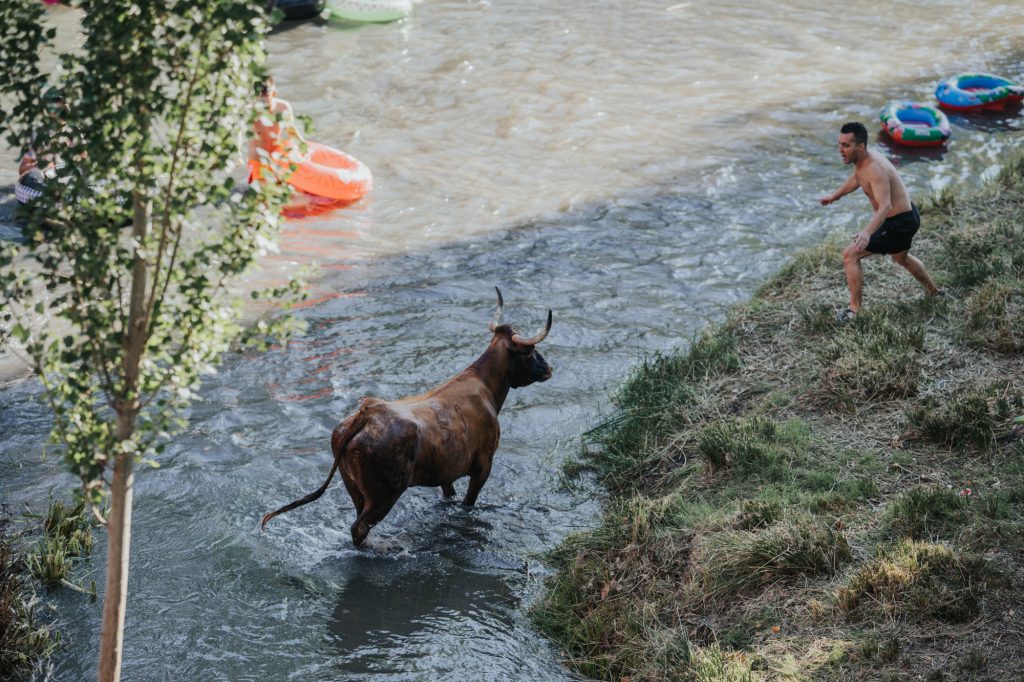 Repartidos por las dos orillas y a distintas alturas del ruedo fluvial, las seis vacas ofrecieron el espectáculo esperado, subiendo y bajando río arriba o abajo, saltando al agua y permaneciendo dentro de ella, en medio de una tarde muy calurosa en la que cientos de personas también escogieron el interior del río para disfrutar del evento, a bordo de barcas, flotadores y colchonetas.