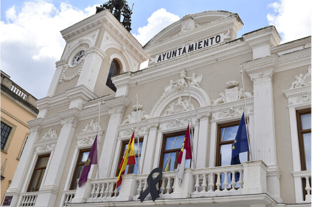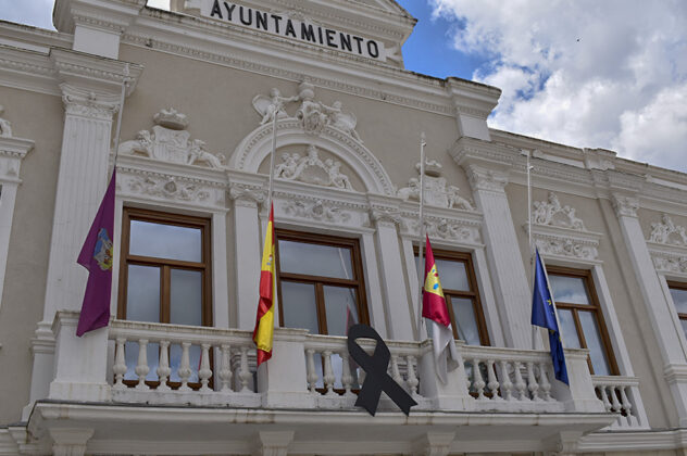 Diez jornadas de luto oficial decretará este martes el Gobierno de España. El Ayuntamiento de Guadalajara se ha sumado a la iniciativa. Todas las banderas de la ciudad ondearán a media asta desde la tarde del 26 de mayo. Hay que recordar que las del balcón del consistorio lo hacen desde el pasado 31 de marzo. Como complemento, un gran lazo negro es visible en la fachada del Ayuntamiento.