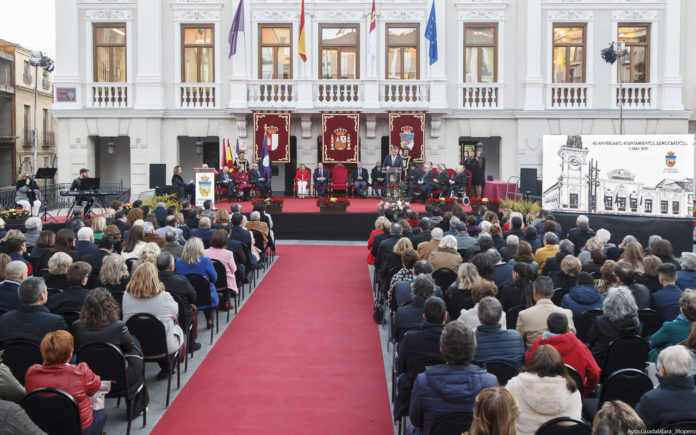 Alcaldes, concejales y los parlamentarios constitucionales de Guadalajara que han tenido su protagonismo en la época de la Transición y que han contribuido a consolidar una democracia consolidada en la ciudad han sido homenajeados por la actual Corporación de la capital alcarreña en un acto público abierto a la ciudad, celebrado este miércoles en la Plaza Mayor del Ayuntamiento.