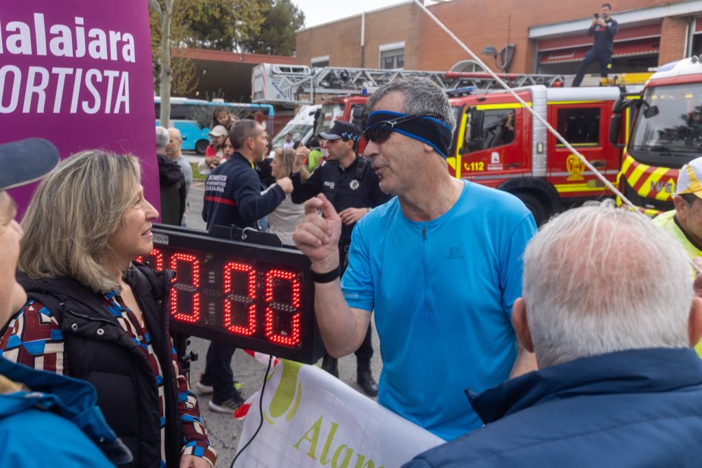 La alcaldesa de Guadalajara, Ana Guarinos, junto al concejal de Deportes, Armengol Engonga, y el concejal de Seguridad, Chema Antón, han estado presentes en la salida, realizada al toque de sirena del camión de bomberos, como en la entrega de premios, mostrando su apoyo a esta iniciativa que año tras año demuestra su capacidad de convocatoria y su espíritu solidario.