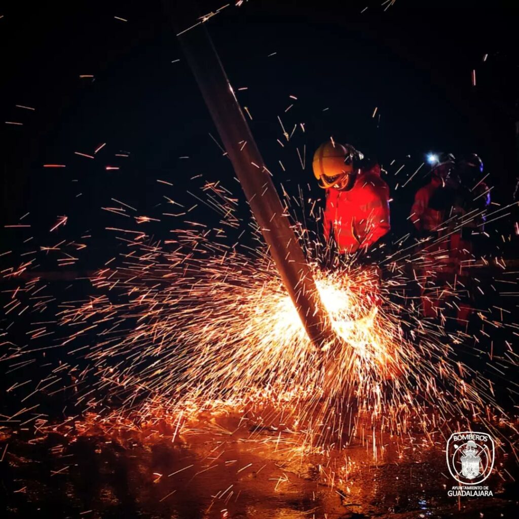 No se trataba de un simulacro sino de un riesgo cierto que había que atajar. Los bomberos de Guadalajara han resuelto una situación complicada y que ha requerido de un trabajo preciso por parte de estos especialistas.