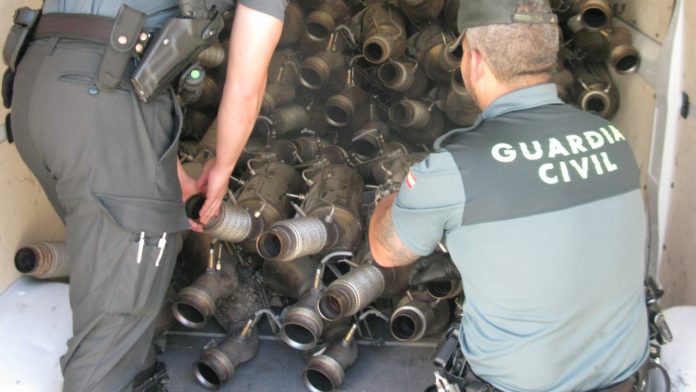 La Guardia Civil de la Comandancia de Guadalajara ha detenido en Azuqueca de Henares a una persona como presunto autor de un delito de robo cometido en una empresa dedicada a la automoción situada en el polígono industrial Miralcampo de Azuqueca de Henares. Se han recuperado 79 tubos de escape con su catalizador, que había conseguido sustraer el detenido.