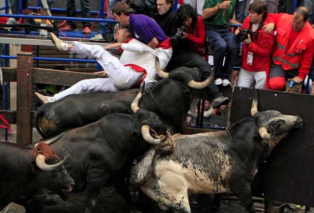 Cuando se acceda a la plaza o al recinto cerrado donde finalice el encierro hay que abrirse en abanico, es decir, a izquierda o derecha.