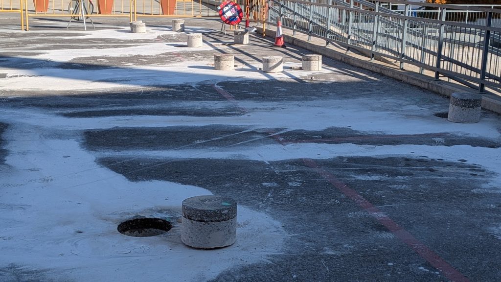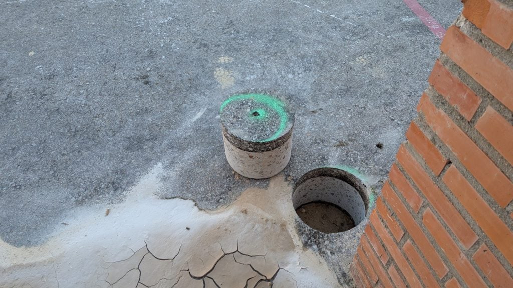 El lunes, con la campa entera a su disposición, los operarios de la contrata comenzaban a taladrar el suelo del modo que se aprecia en las imágenes. Este martes, continúan.