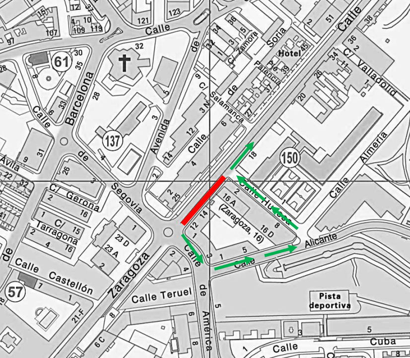 Para ello, el tráfico se cortará durante toda la semana, desde el lunes sobre las 8.00 horas hasta el domingo. Los cortes serán parciales en la calle Zaragoza, en el tramo comprendido entre la calle Segovia-América hasta la calle Huesca (únicamente en sentido subida, dirección calle Huesca).
