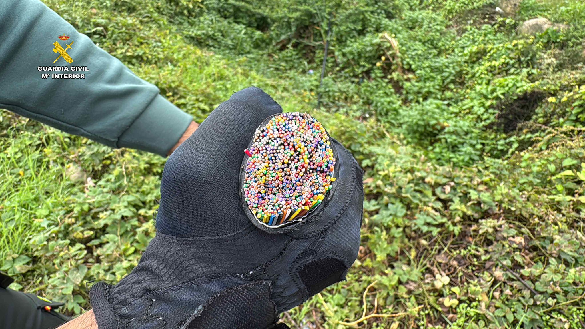 Lo anterior quedó constatado tras hallarse ocultos entre la maleza un total de 550 kilos de cable pelado, dispuestos en fardos para su venta.
