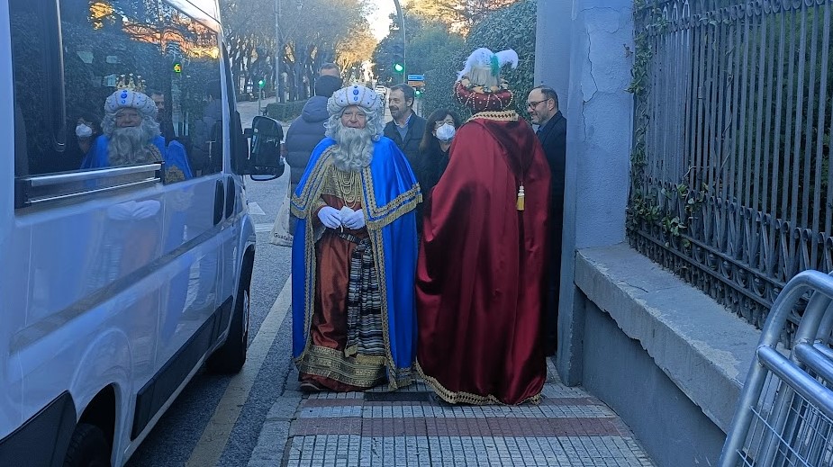 Concretamente, el fotógrafo de LA CRÓNICA se ha topado con los Reyes Magos a las puertas del centro ocupacional «Nuestra Señora de la Salud», donde han podido compartir un buen rato de ilusión con los residentes de esta conocida institución, en el Paseo de Fernández Iparraguirre.