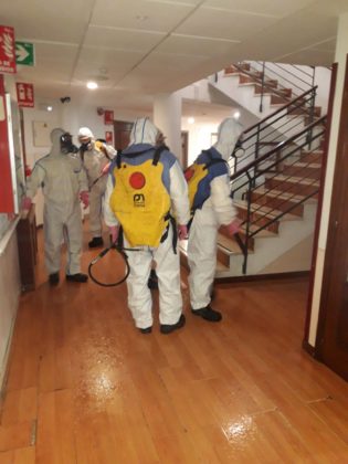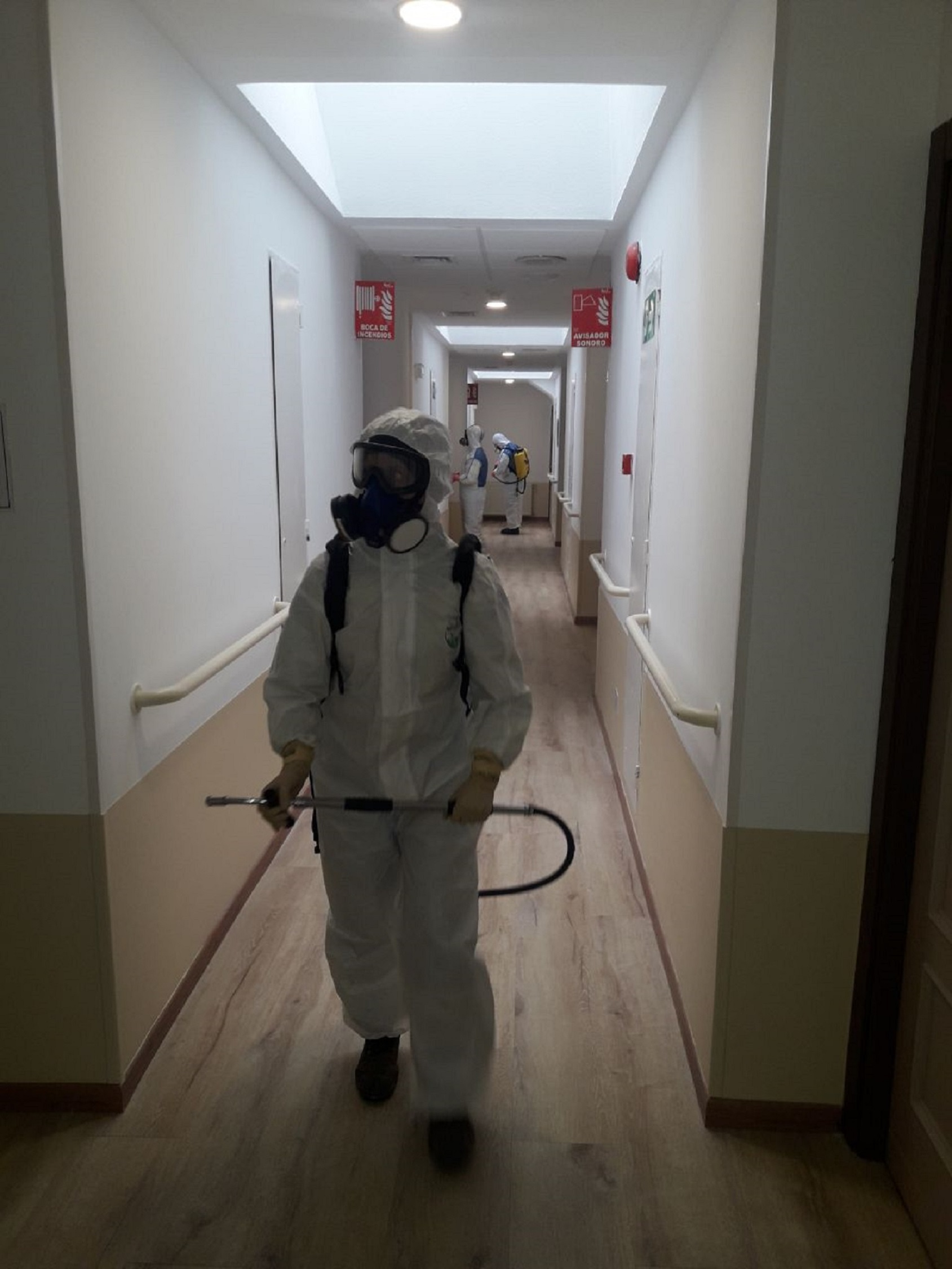 Este dispositivo extraordinario se compone de seis patrullas de limpieza de exteriores (cada una de ellas integrada por un vehículo pick-up con un depósito de 500 litros y un equipo de impulsión a presión para desinfección de exteriores) y tres equipos tándem para limpieza de interiores (formados por una autobomba, un vehículo pick-up y otro todoterreno), sumando un total de 102 efectivos los que se encuentran dedicados a estas labores de limpieza y desinfección.