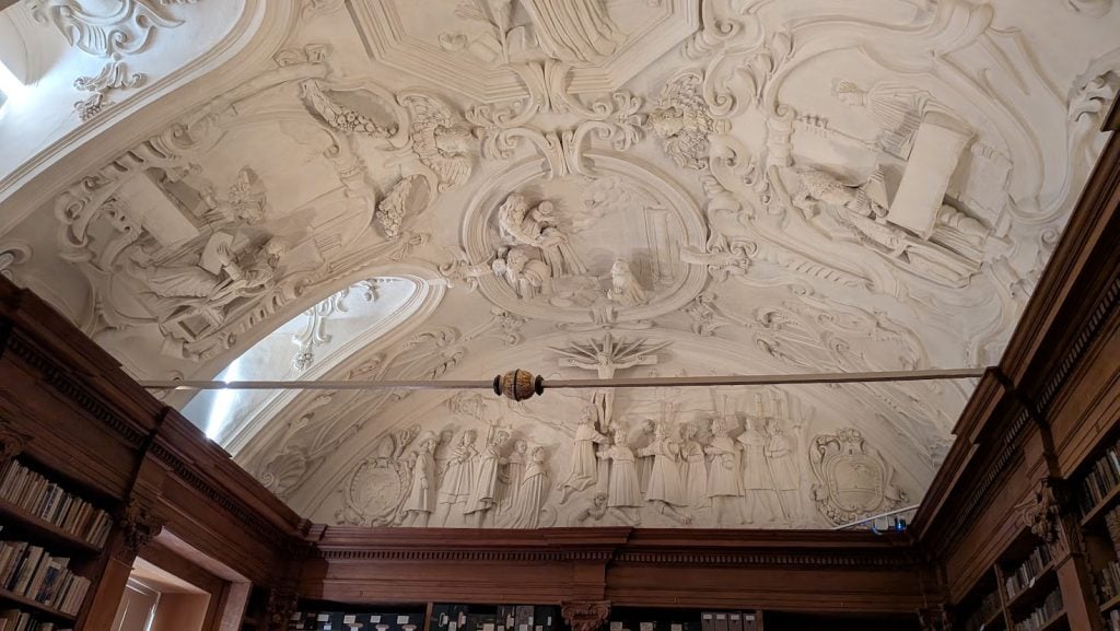 Sea cual sea la temporada del año, el turista ocasional hará bien en acercarse por aquí aunque solo sea por conocer a Hansche y sus increíbles estucos en los techos del refectorio y la biblioteca. Cuesta mucho trabajo encontrar algo semejante en Europa: un delirio de bulto redondo con una técnica tan sofisticada que no se cree y unos resultados que impresionan hasta al más indiferente.