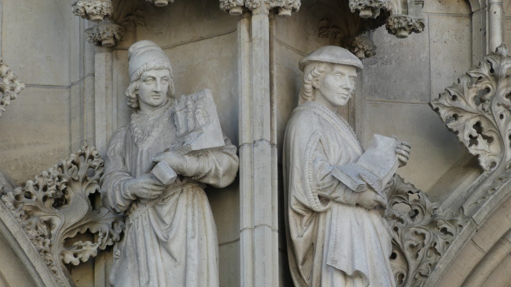 Llegado el siglo XIX, la espera terminó. Puestos a restaurar, y ante la insistencia de Victor Hugo, se esculpieron 236 esculturas, dedicadas a cuanto personaje hubiera tenido relevancia local. La lista, bien se ve, salió extensa, pero encaja perfectamente en el conjunto.