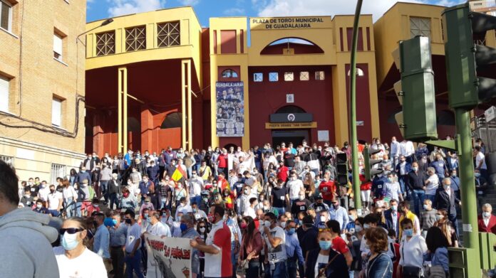 Masivo ha sido el apoyo dado este sábado en Guadalajara a las corridas de toros y encierros, a pesar de las limitaciones propias del estado de alarma. No ha habido manifestación propiamente dicha, sino un «paseo» multitudinario que puede haber congregado a varios miles de personas, en un número difícil de cuantificar con precisión, cercano quizá a los 4.000 asistentes. Durante el recorrido han caminado todos provistos de mascarillas. La asistencia ha sido muchísimo más nutrida, en múltiplos de diez al menos, que a cualquiera de las últimas manifestaciones convocadas por antitaurinos en la capital alcarreña.