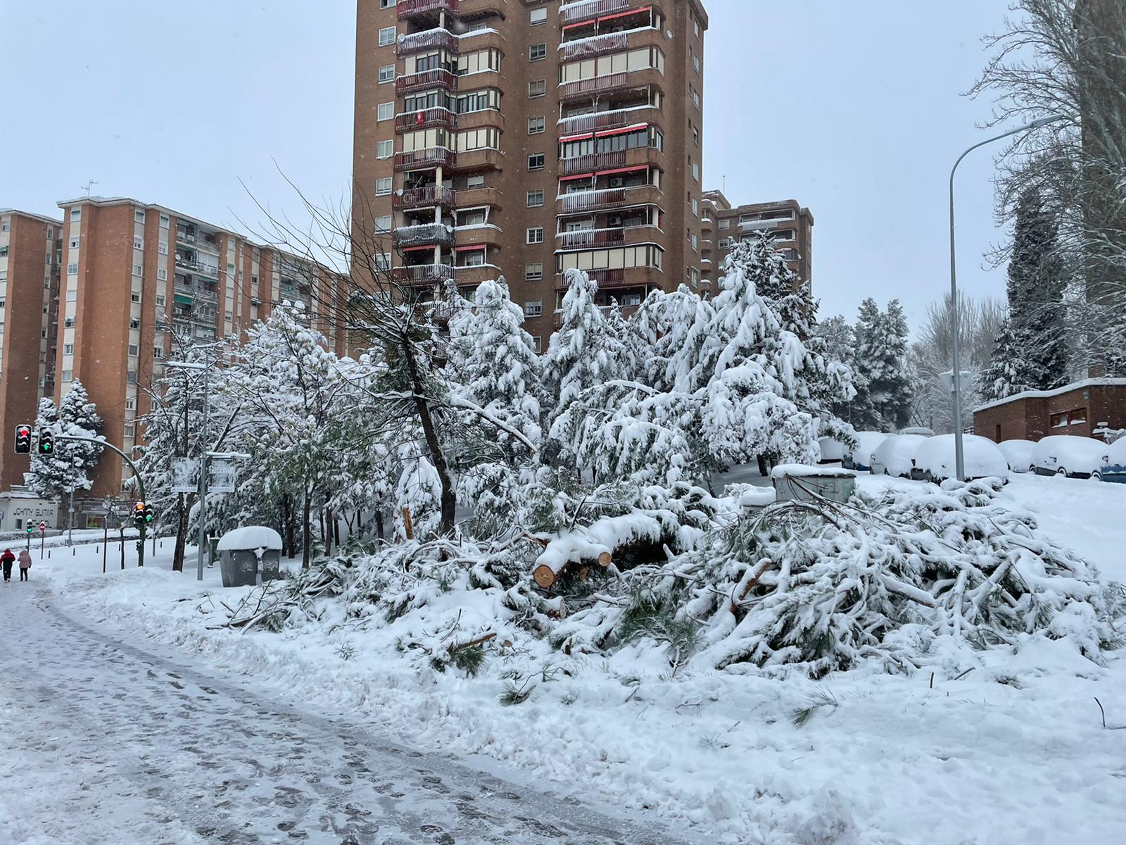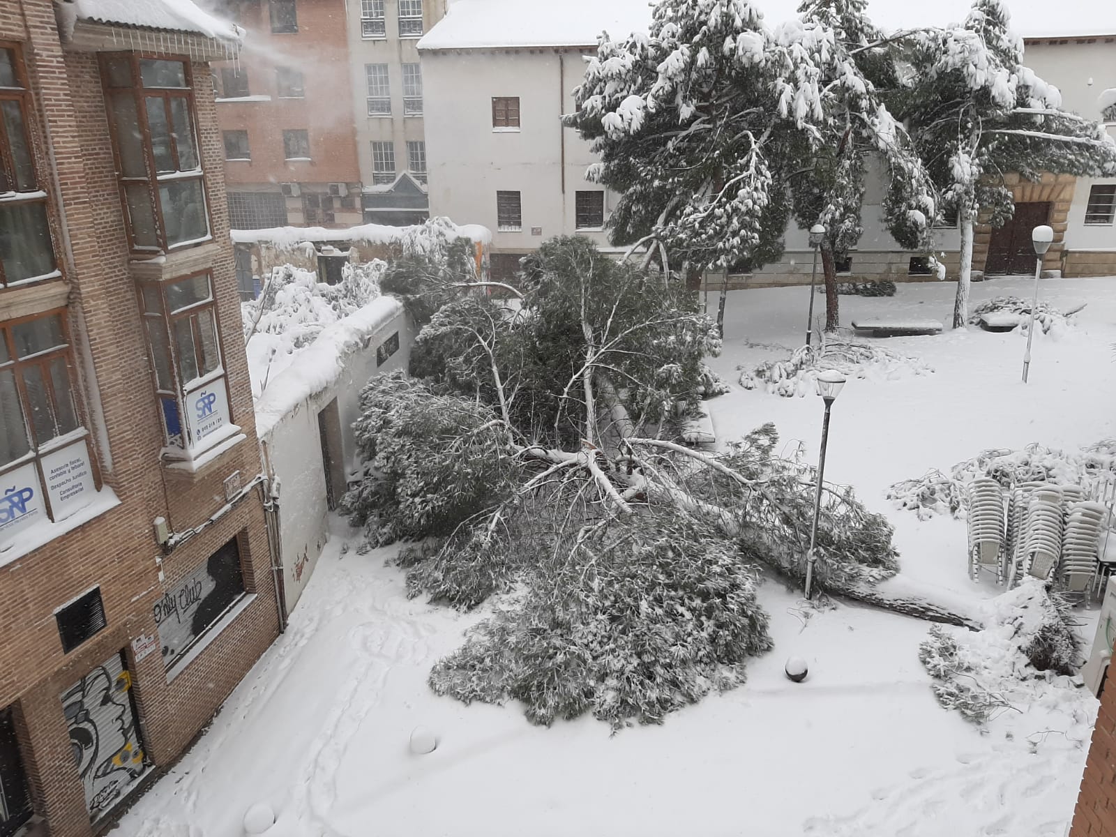 Además de los pinos caídos en la plaza de San Esteban, de los cuales ya ha informado LA CRÓNICA, en la plaza del Jardinillo otro árbol se tronchó por el peso de las nieve.