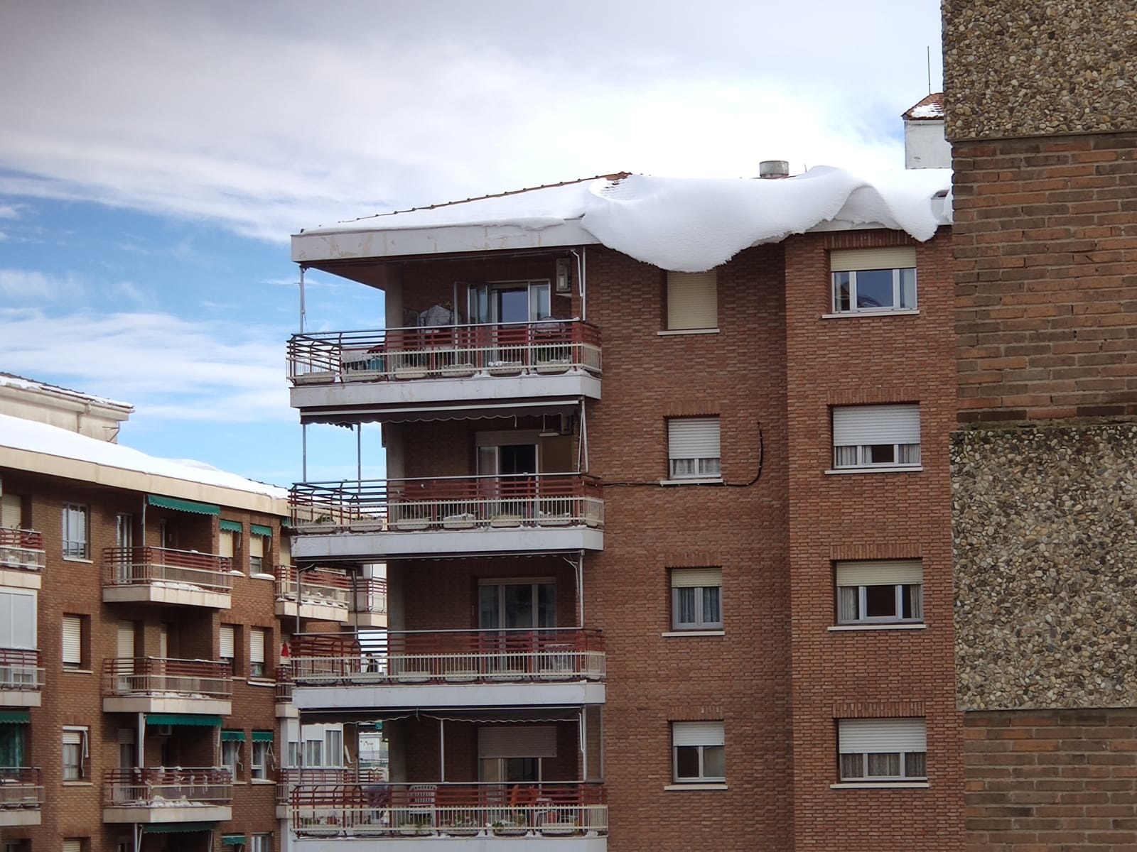 Junto con ello, el riesgo que suponen algunos edificios era palpable desde el sábado en el vídeo que reproducimos a continuación, facilitado por un lector. Las imágenes corresponden a un bloque de viviendas de la calle Sigüenza: