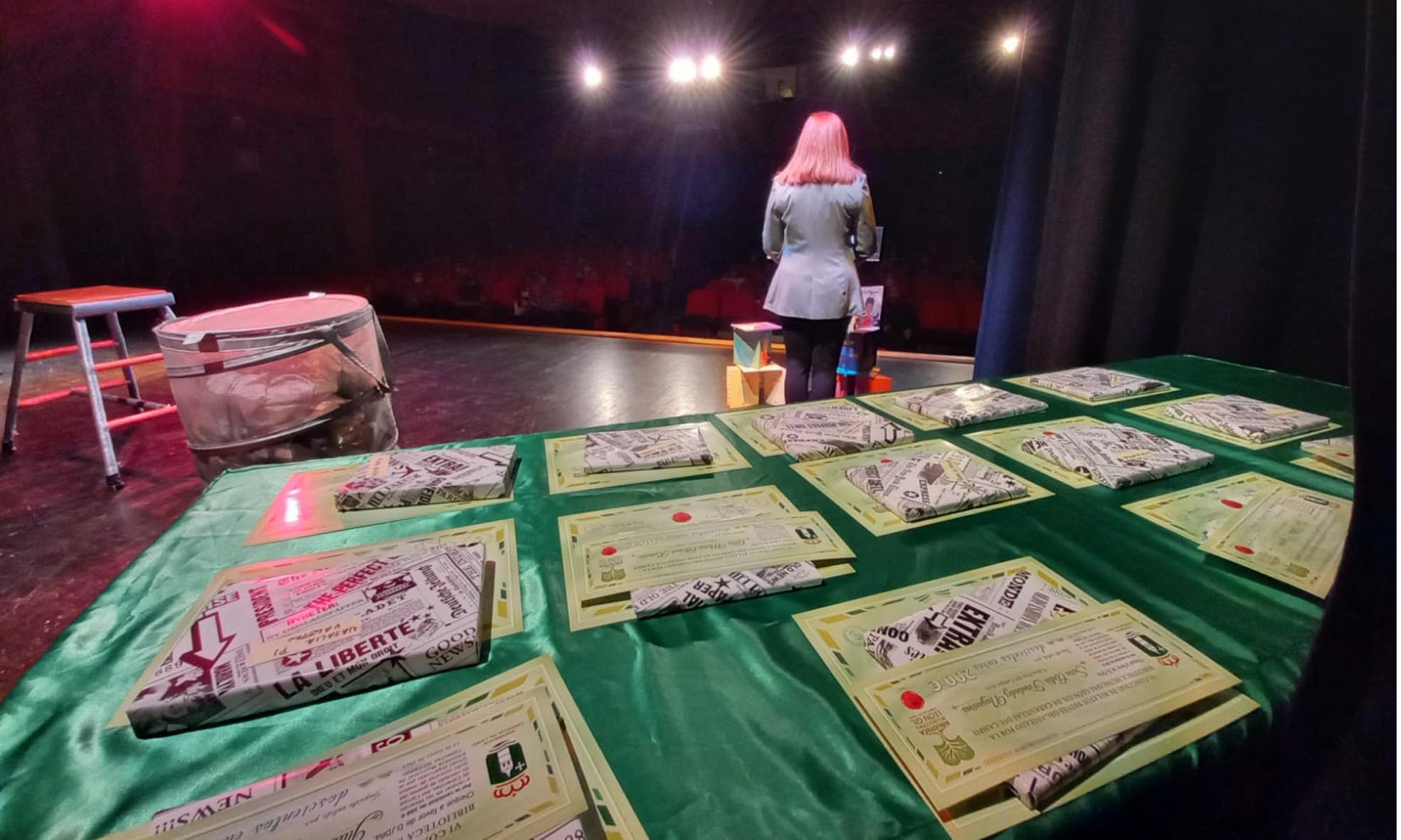 En la entrega de premios, junto al alcalde y la directora de la Biblioteca participaron los dos concejales del área cultural del consistorio, Rosa María García y Manuel Gallego. Tras la misma, y los emotivos discursos de agradecimiento que ofrecieron los galardonados, el acto culminó con la representación de teatro infantil de Comando Teatral, con las actrices Gema Fernández y Montse de la Cal.