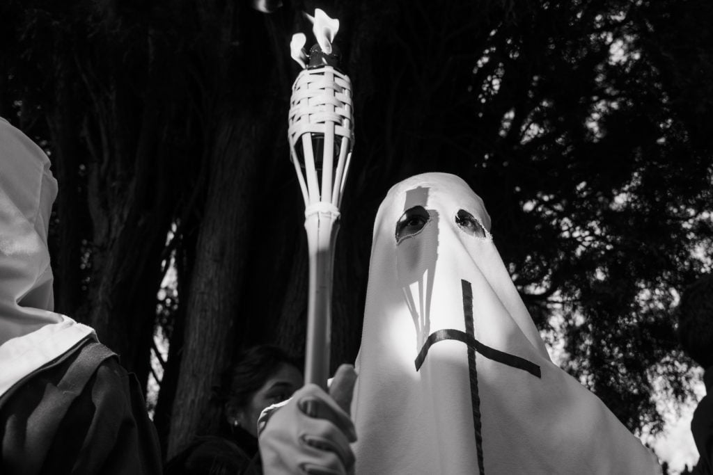 La escena se construye en capas: participantes, espectadores y espacio urbano conviven en un mismo plano, generando situaciones de alta densidad simbólica y estética. Un contexto especialmente relevante para la fotografía documental, donde el gesto, la atmósfera y la interacción social adquieren protagonismo.