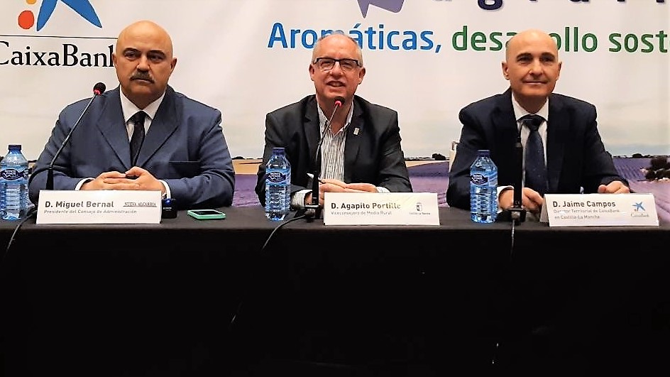 A la jornada, organizada por Nueva Alcarria, también han acudido la directora general de Políticas Agroambientales, Silvia Nieto; el director del IRIAF, Esteban García Romero; el delegado provincial de Agricultura, Agua y Desarrollo Rural, Santos López Tabernero; el presidente de Nueva Alcarria, Miguel Bernal; el director territorial de CaixaBank, Jaime Campos; y el presidente de Anipam (Asociación Nacional Interprofesional de Plantas Aromáticas y Medicinales), Abelardo Carrillo.