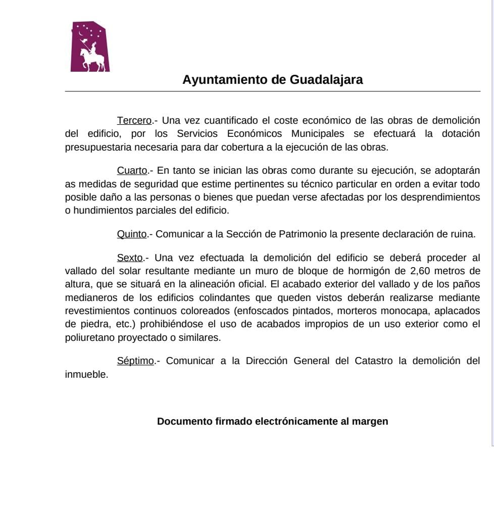 El asunto ha saltado durante el punto en el que se trataban los Decretos de Alcaldía y Acuerdos de la Junta de Gobierno Local. Se trataba, en concreto, de un Decreto firmado por el primer teniente de Alcalde, Rafael Pérez Borda (Ciudadanos). Terciando en el debate, el alcalde de Guadalajara se ha comprometido a que no se derribará este histórico edificio y que se le dará algún uso. La recuperación de «Harinas Mora» era una de las medidas contempladas por el PSOE en el programa electoral con el que llegó Alberto Rojo llegó a la Alcaldía en 2019.