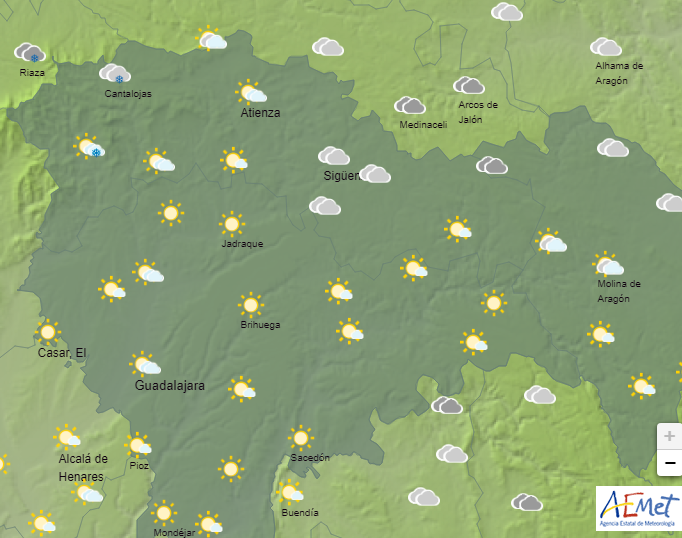 Aemet anuncia para este domingo en la provincia de Guadalajara la presencia de cielos nubosos de nubes bajas que evolucionarán por la tarde, en general, a poco nubosos.