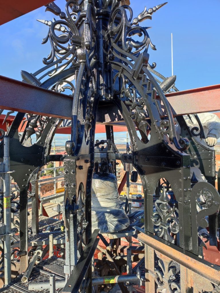 Meses después, las obras en la torre del Ayuntamiento de Guadalajara continúan. Dadas las fechas en las que estamos y el estado de la reforma, que se puede comprobar en nuestra galería gráfica, este 31 de diciembre no se podrá despedir 2024 desde la Plaza Mayor, porque la torre estará «afónica».