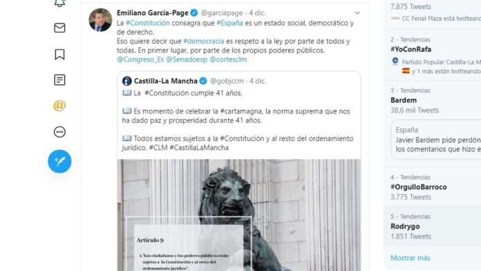 Los tuits que el presidente regional, Emiliano García-Page, ha venido publicando, diariamente, durante toda esta semana, para conmemorar el 41 aniversario de la Constitución han alcanzado a más de 170.000 usuarios en esta red social.