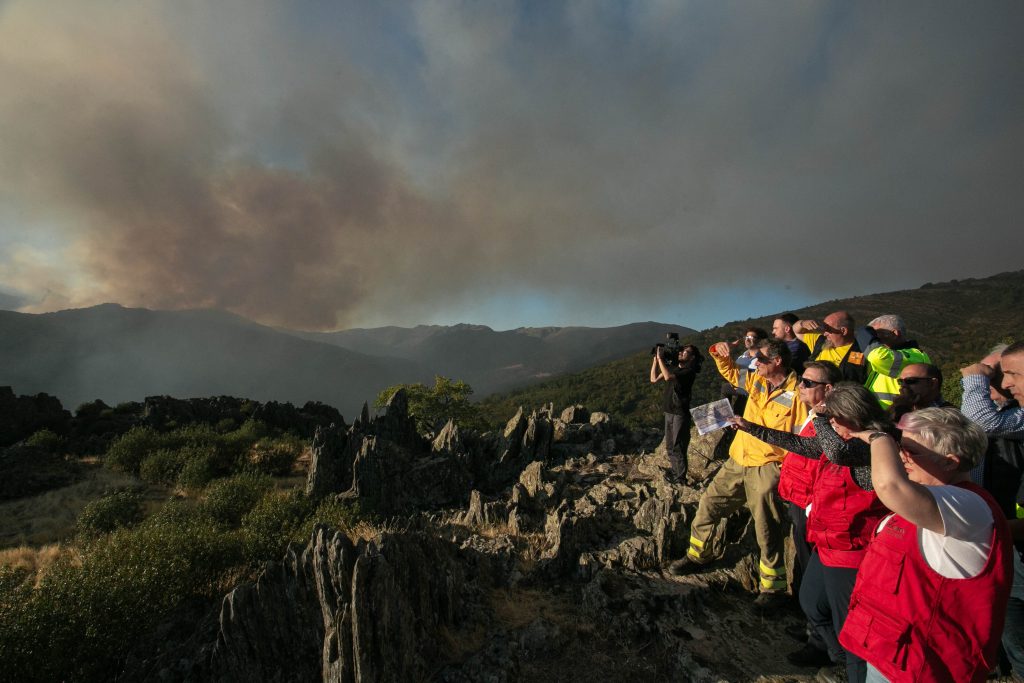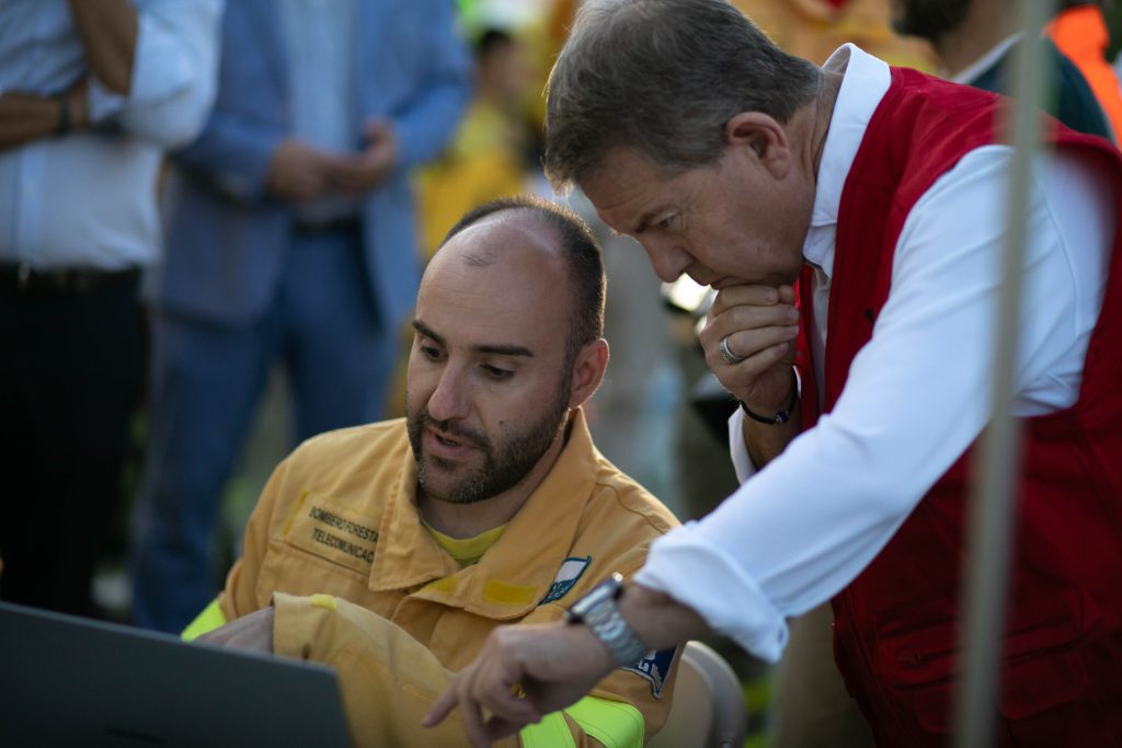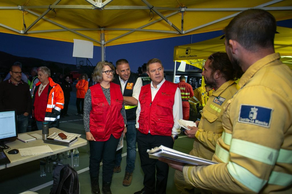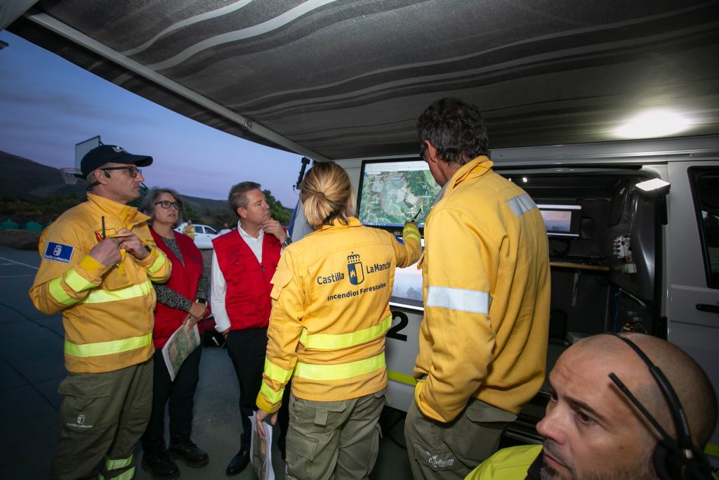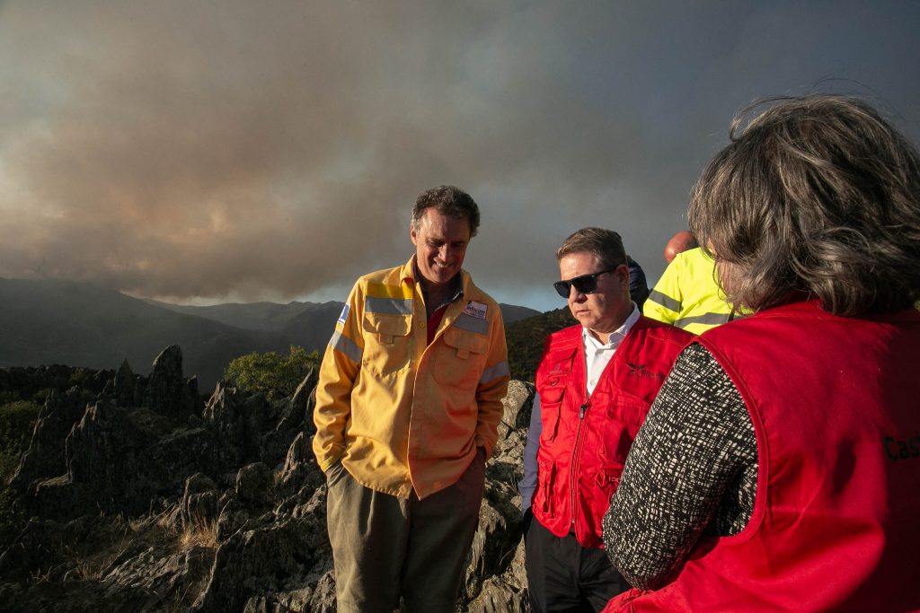 A última hora de la tarde del viernes, el presidente de Castilla-La Mancha, Emiliano García-Page, ha visitado el centro de control de los trabajos para la extinción del incendio de Peñalba de la Sierra, ubicado en Campillo de Ranas.
