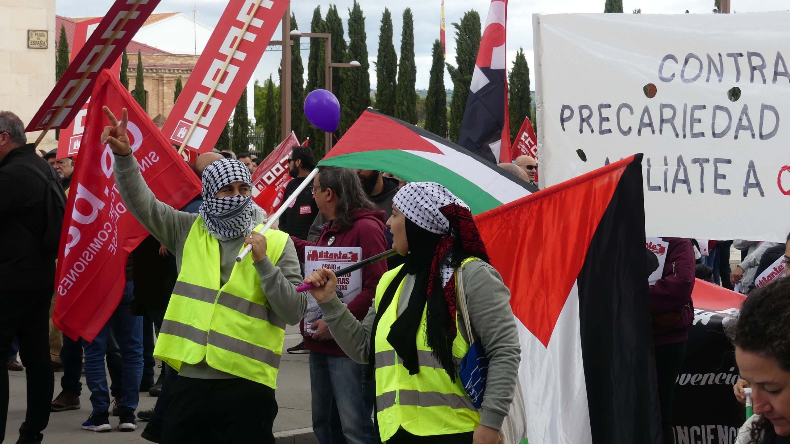 La manifestación del Primero de Mayo en Guadalajara ha tenido este 2024 un nuevo protagonista, bien a su pasar: el pueblo palestino, después de tantos meses de acción militar isrelí en Gaza.