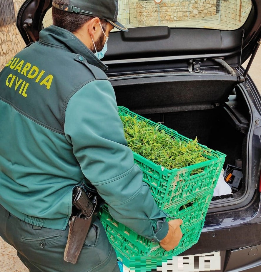 Una vez interceptado, e identificados sus ocupantes, se pudo comprobar que estos transportaban en el maletero tres cajas de plástico que contenía 293 esquejes de planta de marihuana (cannabis sativa). Por este motivo, estas personas fueron trasladadas junto con su vehículo a las dependencias de la Guardia Civil en Almonacid de Zorita, donde se procedió a su investigación como presuntos autores de un delito contra la salud pública por cultivo de marihuana.