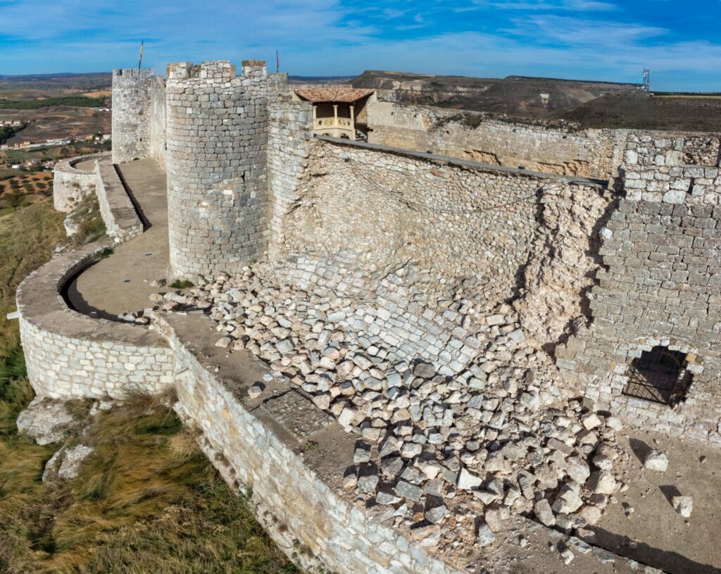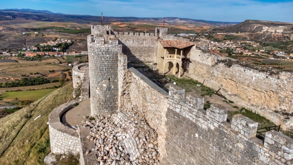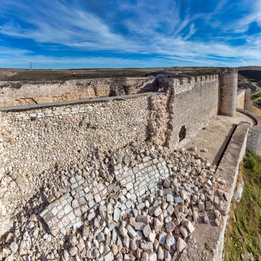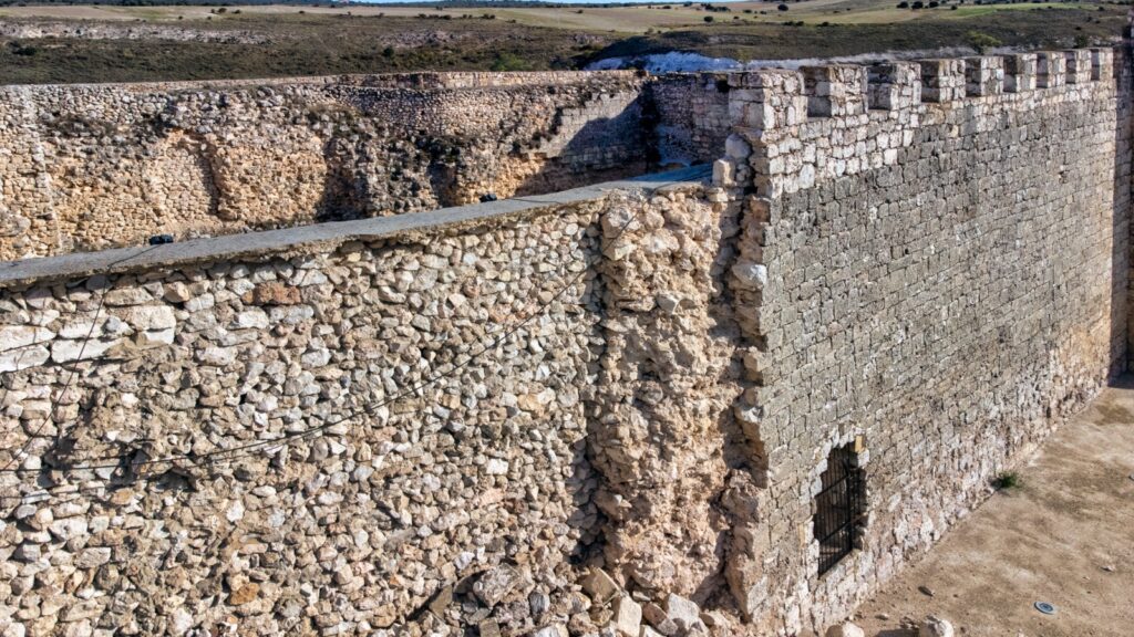 El lienzo noreste del castillo de Jadraque se derrumbó en septiembre de 2023, como consecuencia de un episodio de fuertes lluvias. Ahí sigue.