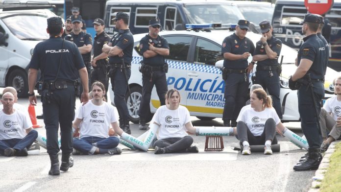 "Poniendo este freno humano en las calles de manera pacífica reclamamos al Ayuntamiento que no rebaje una medida que ha demostrado su eficacia reduciendo la contaminación a su valor más bajo en 10 años", ha indicado la organización en un comunicado, acompañado de imágenes de los activistas sentados en el suelo para impedir la entrada de coches en esta calle y con una pancarta en la que denuncian que la contaminación es la responsable de 38.000 muertes anuales.