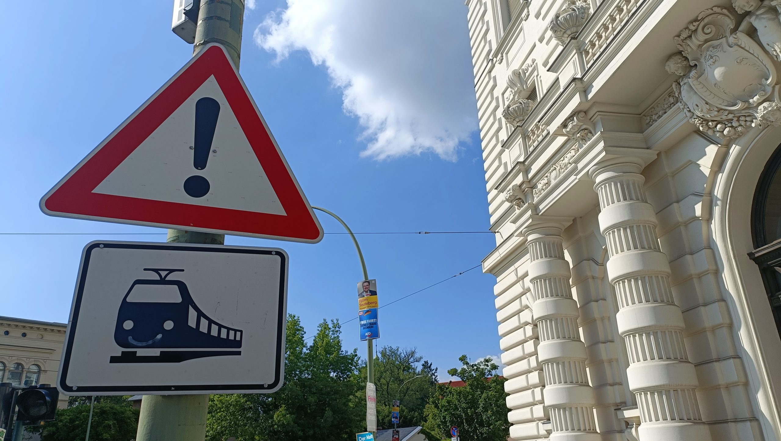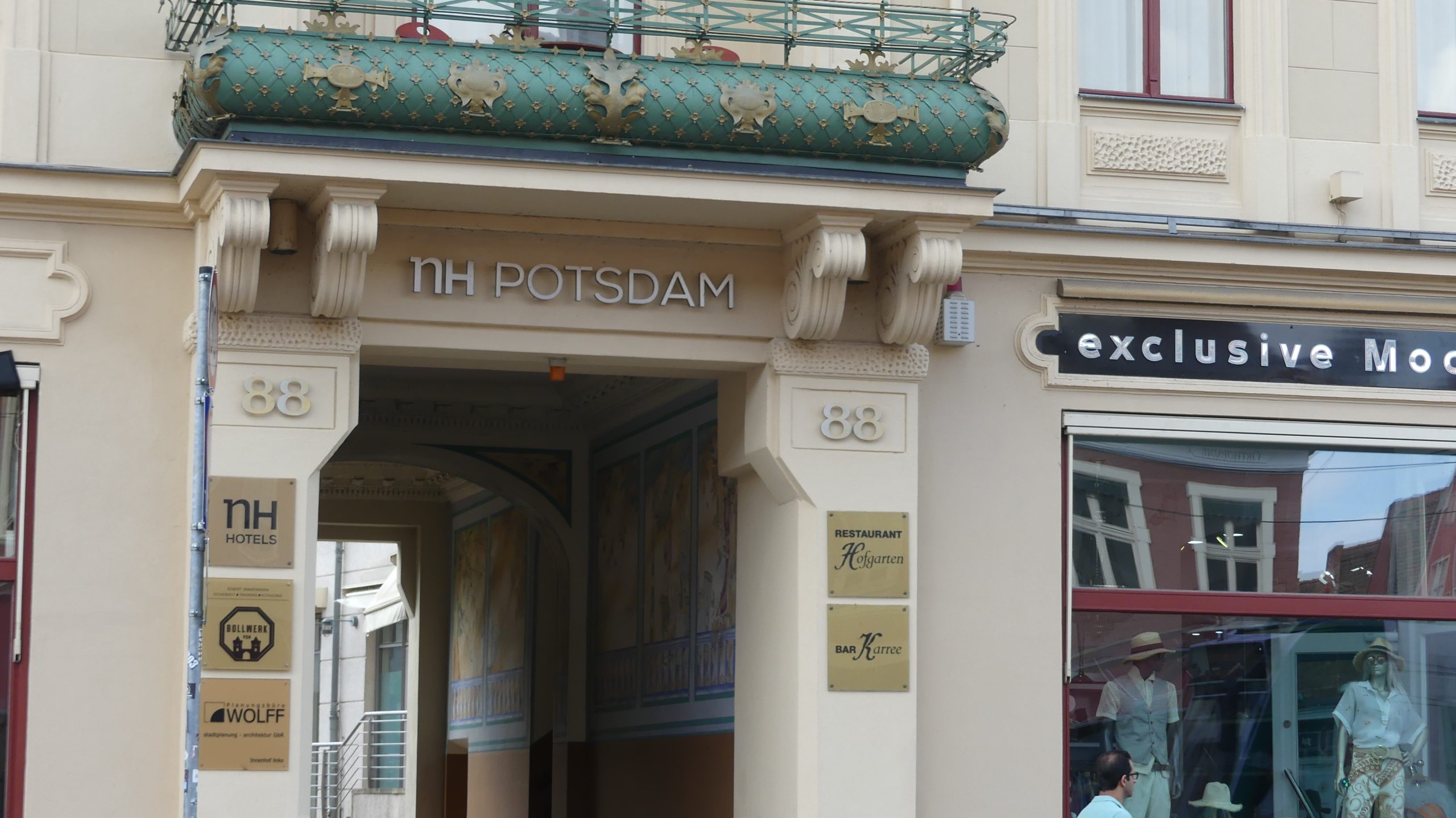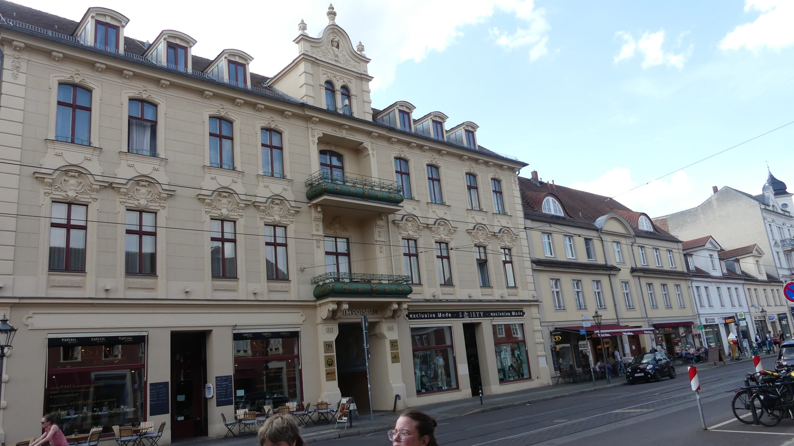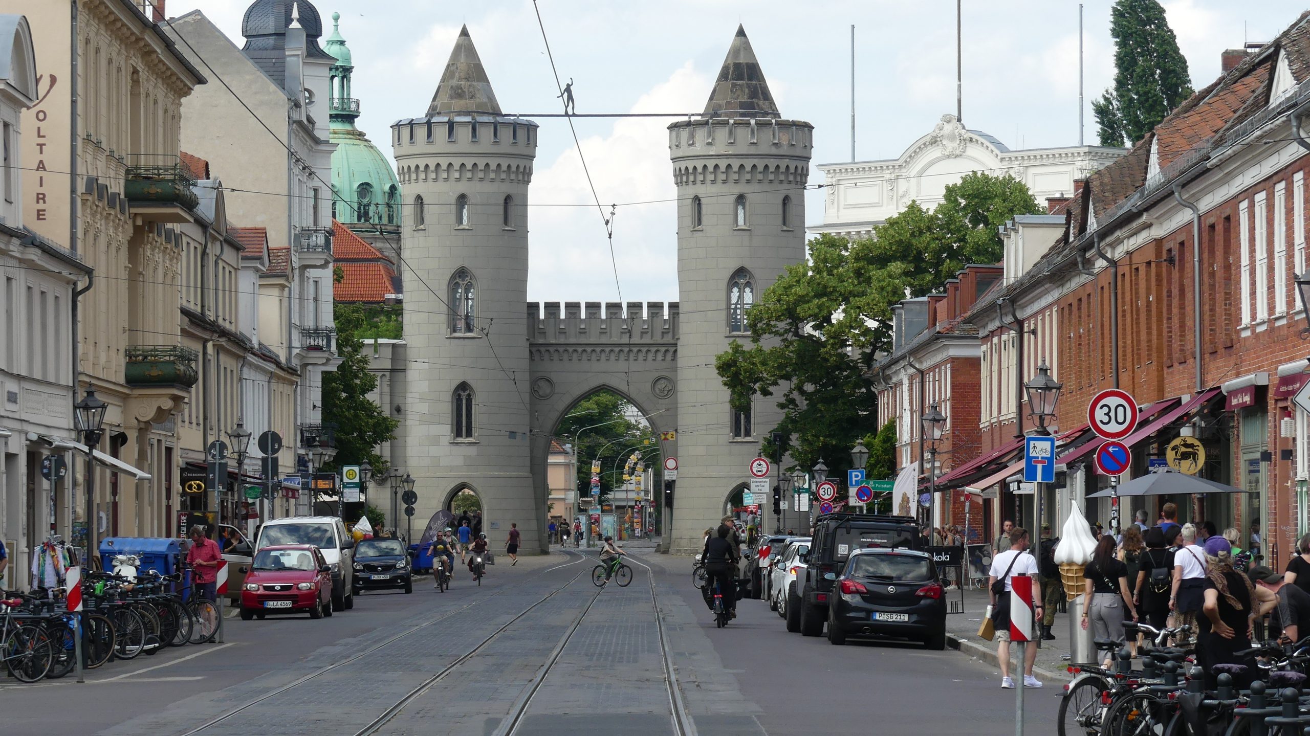 Señalemos que el mayor peligro de caminar por Potsdam no son los tranvías (aquí no acosan tanto al peatón como, por ejemplo, en Praga) sino tropezar. Y no porque el pavimento no esté cuidado, sino por lo mucho que se anda con la vista hacia lo alto, atisbando la decoración de las fachadas. El buen burgués, ya se sabe, siempre quiso verse reconocido por su éxito, desde su casa.
