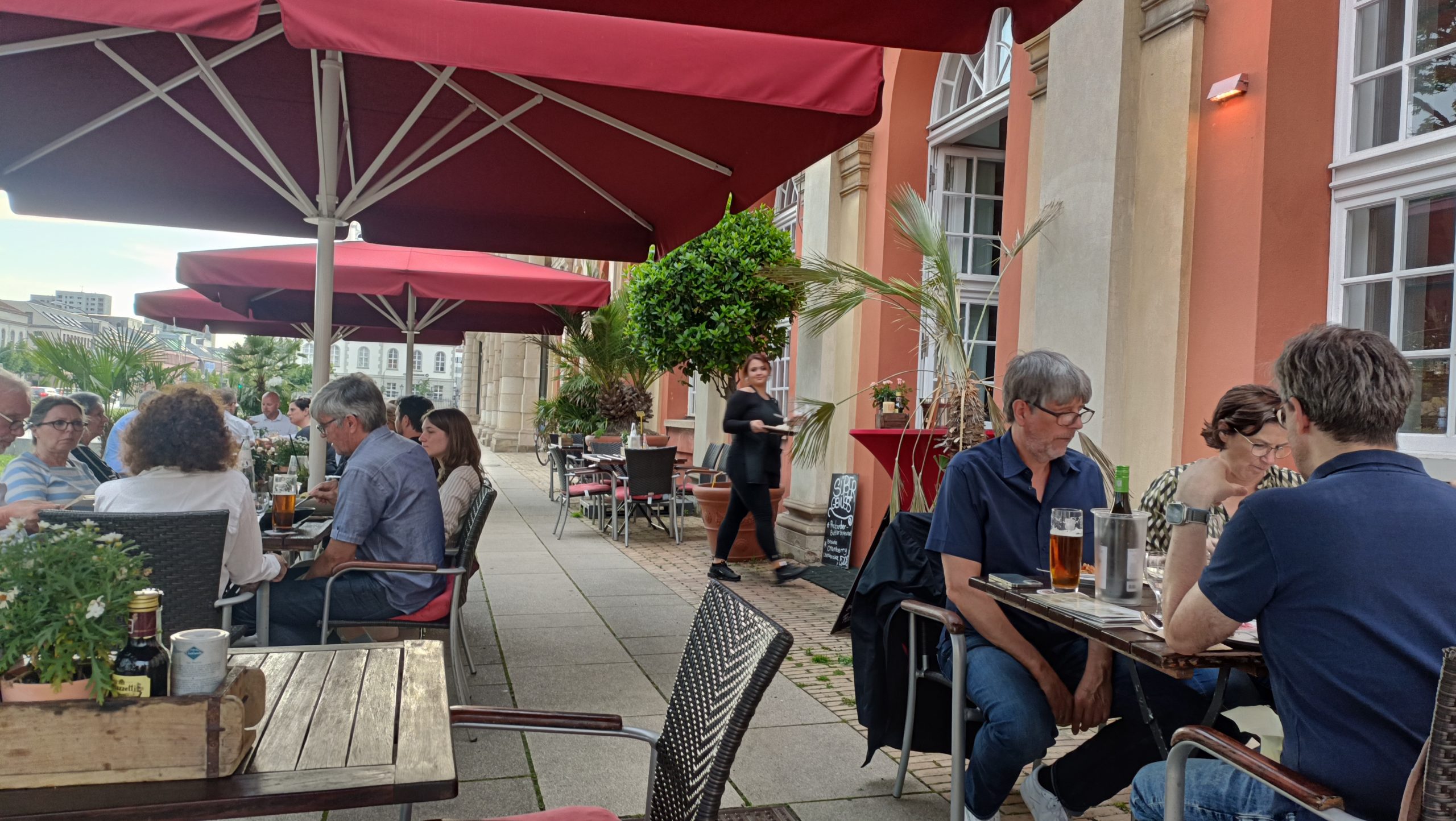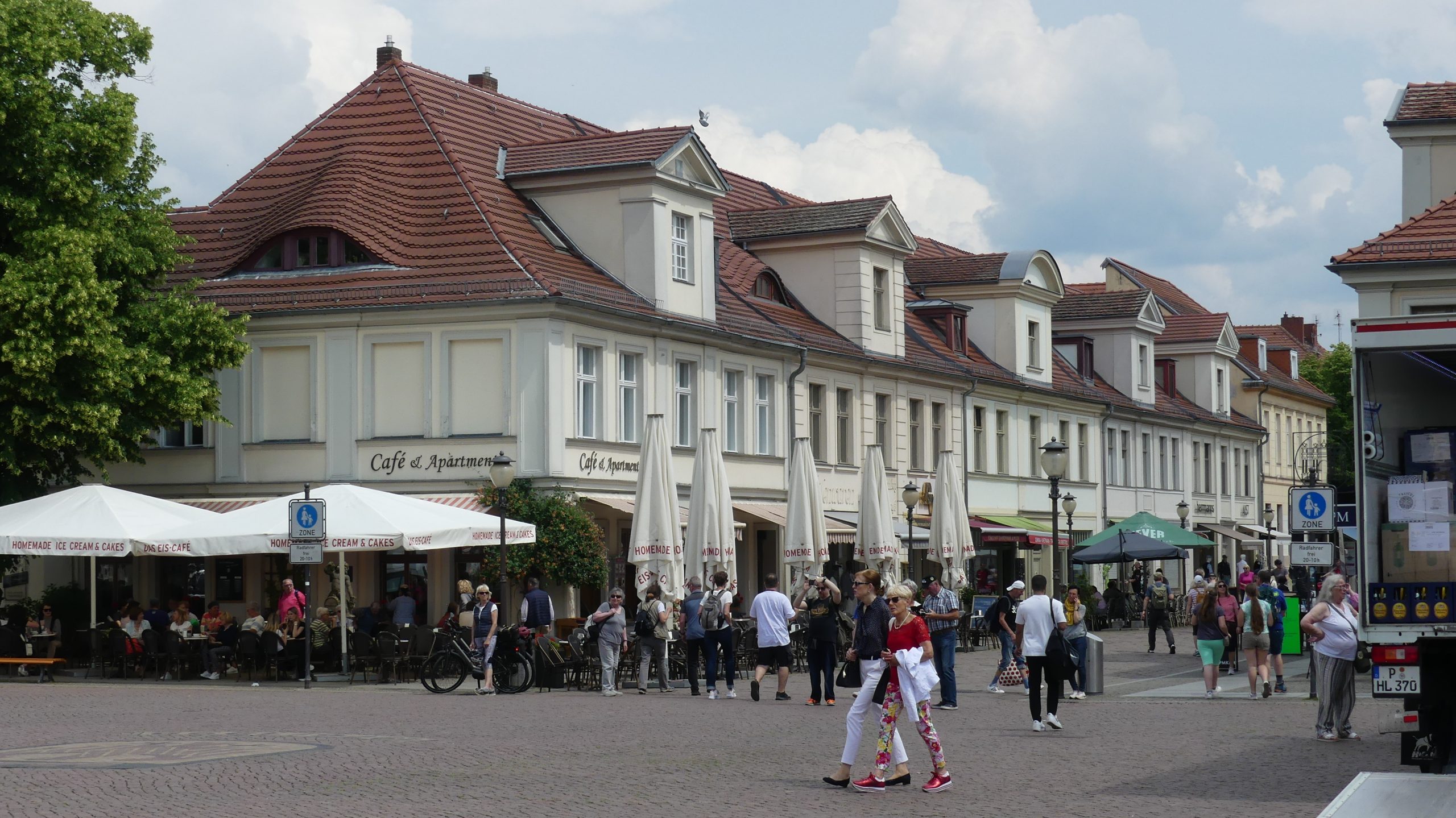 En Potsdam, el viajero no pasa hambre ni sed. A la que el sol asoma, las calles se llenan de copas de helados y clientes que los consumen con un placer innegable, por las expresiones de los rostros. Para comidas de más enjundia, de mesa y mantel, la oferta es variada, aunque podemos sugerir algunos establecimientos: