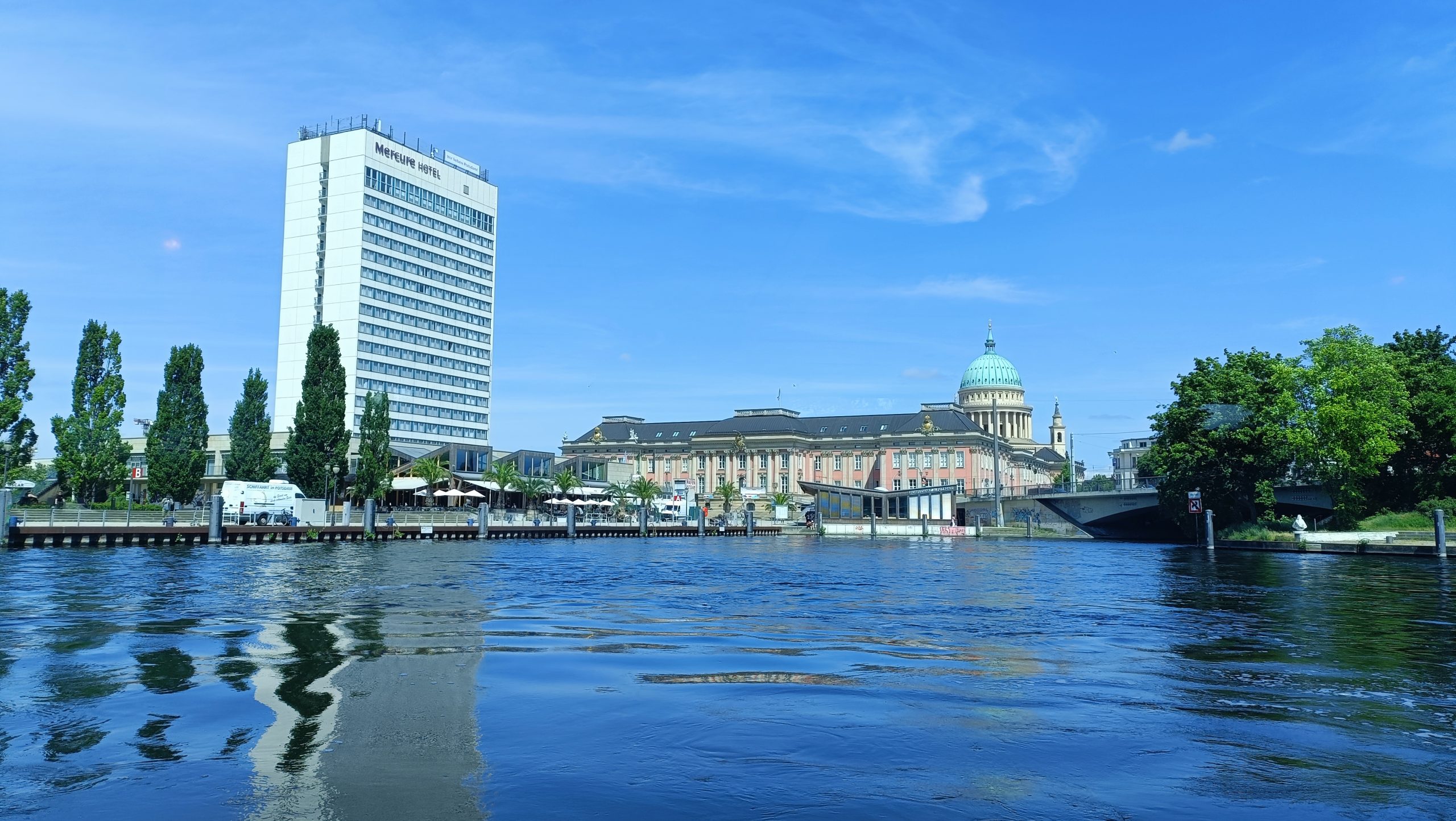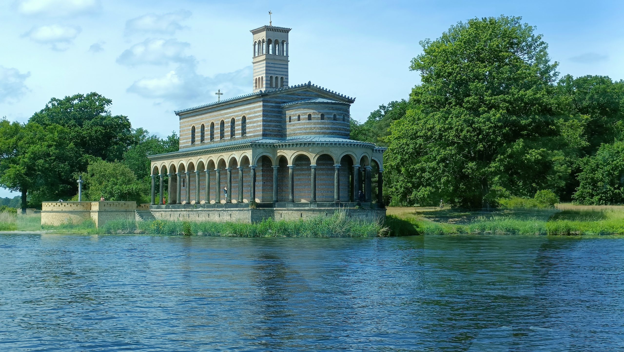 Otra forma de asomarse por allí, pausadamente, la tenemos en cualquiera de los muchos cruceros que salen desde Lange Brücke. En hora y media, ya sea en la sobrecubierta o resguardados dentro del amplio comedor, los pasajeros no sólo pasarán bajo la célebre estructura de hierro; también se cruzarán con pedalos y barcos de vela, harán recuento de patos y hasta comerán, si coincide el horario con mesa y mantel… y sin mayor esfuerzo, tendrán otra perspectiva de casi todo, tanto de Babelsberg –con su parque y su palacio– como de la iglesia del Redentor de Sacrow, el castillo de Pfaueninsel o, en la distancia, el Palacio de Mármol.