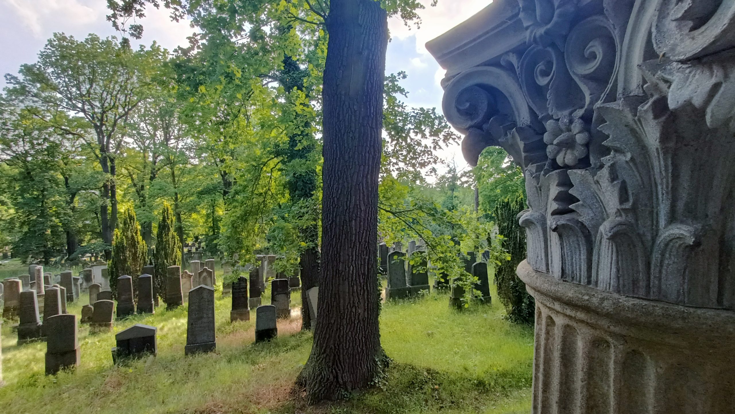 • Un Belvedere en medio de un bosque, junto a un cementerio judío. Potsdam tienes más de un belvedere, sobrada como está de lugares vinculados a la belleza y al ocio. Este que comentamos está en lo más espeso del Jardín Nuevo, en Pfingstberg, a poca distancia de la iglesia ortodoxa… y a contados pasos de un arrebatador cementerio judío. Quién pudiera vivir en el chalet que pilla de camino…