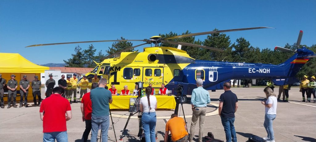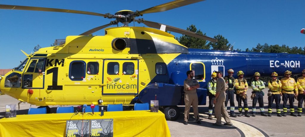 La cita con los medios de comunicación ha sido en la base aérea de incendios forestales del dispositivo INFOCAM en Las Minas de Hiendelaencina.