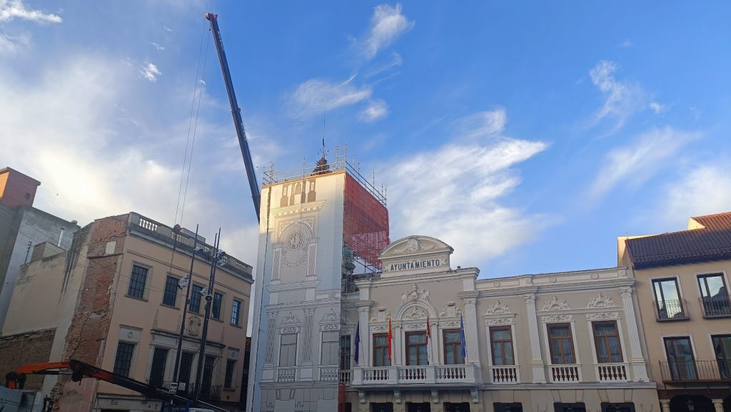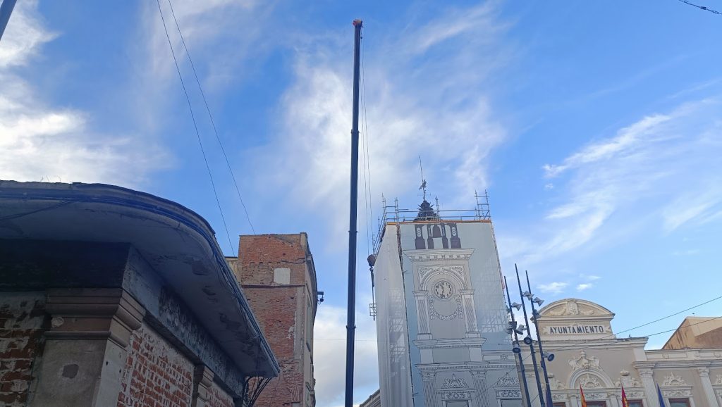 Lo adelantó en primicia LA CRÓNICA este miércoles y se ha confirmado al amanecer del jueves: una grúa de gran tonelaje está actuando desde Doctor Mayoral (la popularmente conocida como Cuesta del Reloj) para levantar el cimborrio de la torre e introducir entre medias una estructura metálica que sirva para facilitar su restauración sin necesidad de desmontarlo.