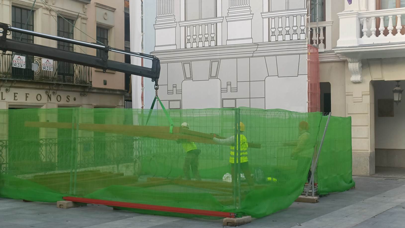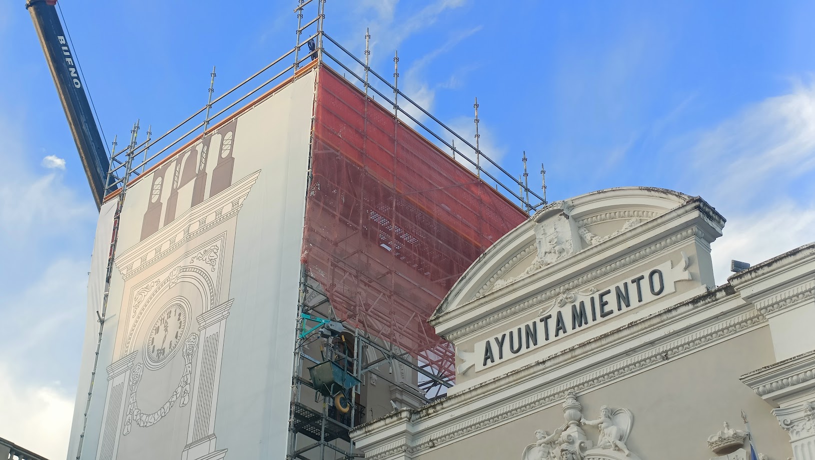 Va ya para tres meses desde que se tomó la decisión, a la luz de los informes técnicos, de reparar con urgencia la torre de las casas consistoriales. Desde entonces, es notoria la presencia de los andamios y de los telones que los cubren.