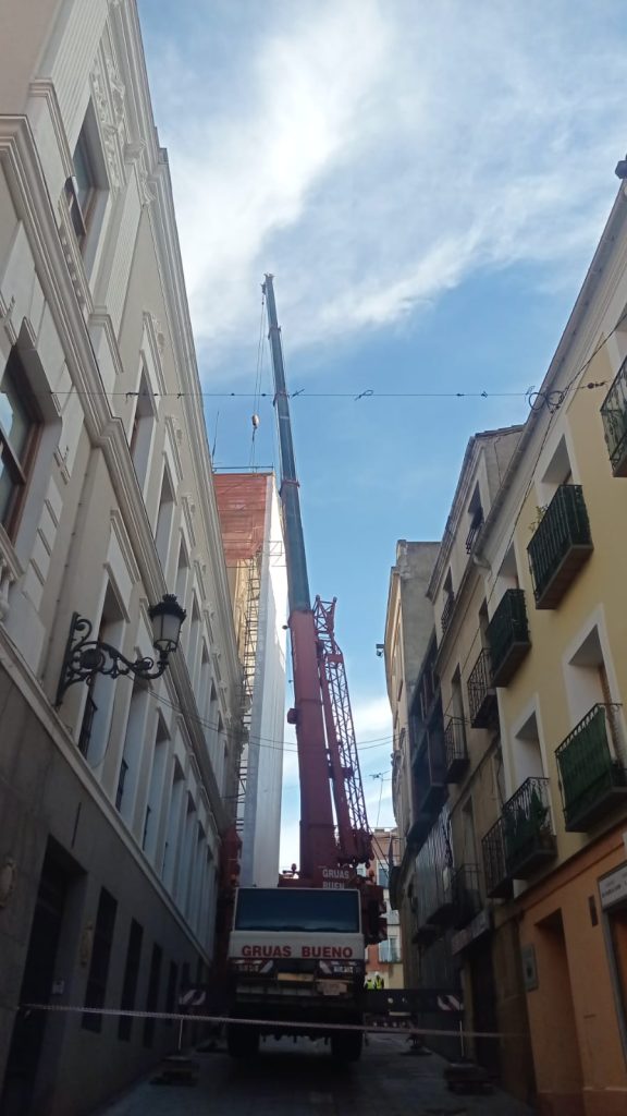 La tregua de la climatología ha ayudado y así, sin viento ni lluvia, los trabajos se están realizando este 10 de octubre sin aparentes problemas. Según el plan, además, los ocupantes de varios despachos del Ayuntamiento tendrán que trasladarse en esta jornada al Edificio Arriaca, en la plaza del Consejo, como medida de precaución.