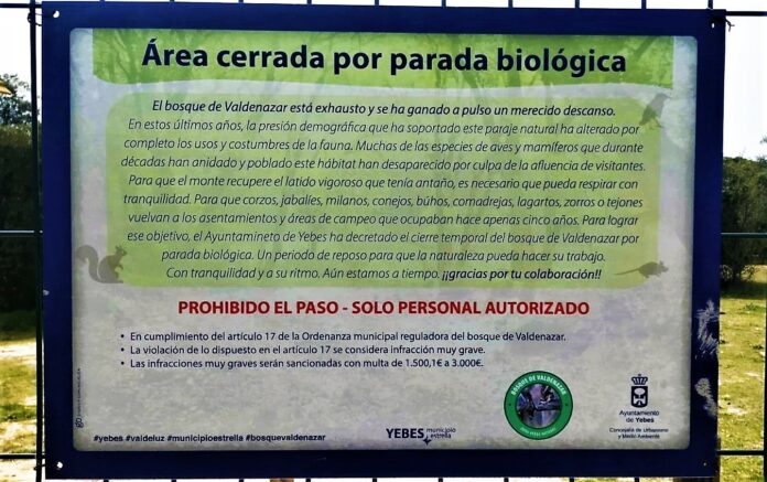 La Concejalía de Medio Ambiente subraya que esta «decisión indispensable» se llevará a cabo cada año para posibilitar la regeneración de las especies de Valdenazar. «En esta época de reproducción se antoja esencial (el cierre a las visitas) para decenas de especies faunísticas y botánicas que se asientan en este bosque», sostiene el concejal de Medio Ambiente, Vidal Gaitán.