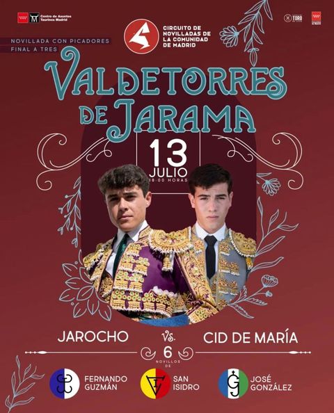 Este este 13 de julio cuando Cid de María y «Jarocho» se disputan la gran final del ciruito de novilladas de Madrid. El paso del campiñero por este certamen ha sido espectacular y ahora ha llegado el momento de rubricarlo con una gran actuación en Valdetorres del Jarama, ante las cámaras de Telemadrid.