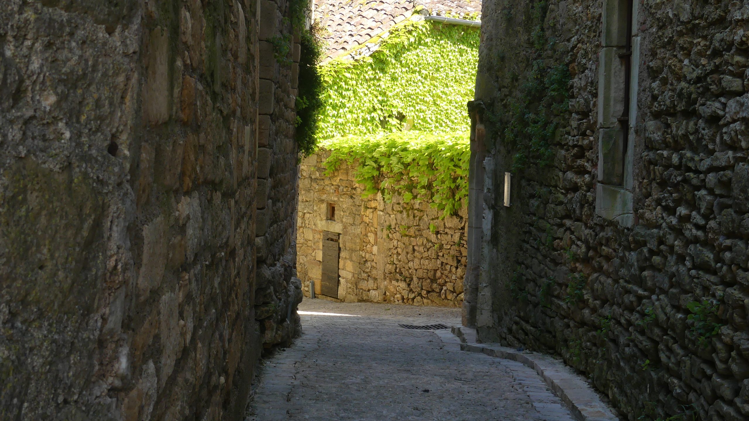 Puy-l’Évêque, este pueblo que tan pocos conocen en España pero que da tanto de sí aun siendo tan pequeño, es en sí mismo una lección sobre nosotros mismos. Si se permite el alarde, los europeos de hoy somos, en buena medida, herederos directos de aquella sociedad de hace casi un milenio. A ver si no cómo se explica quien pasee por estas calles estrechas y empinadas que en lo alto de todo se encuentre la fortaleza que siempre acogió al señor de la villa, mientras que sus más fieles fueron construyendo casas nobles, como cinturones que abrazan la roca, cada uno unos metros más abajo en ese duro, inmenso, colosal peñasco que hoy asoma al pie de muchos de esos edificios, acreditando su antigüedad.