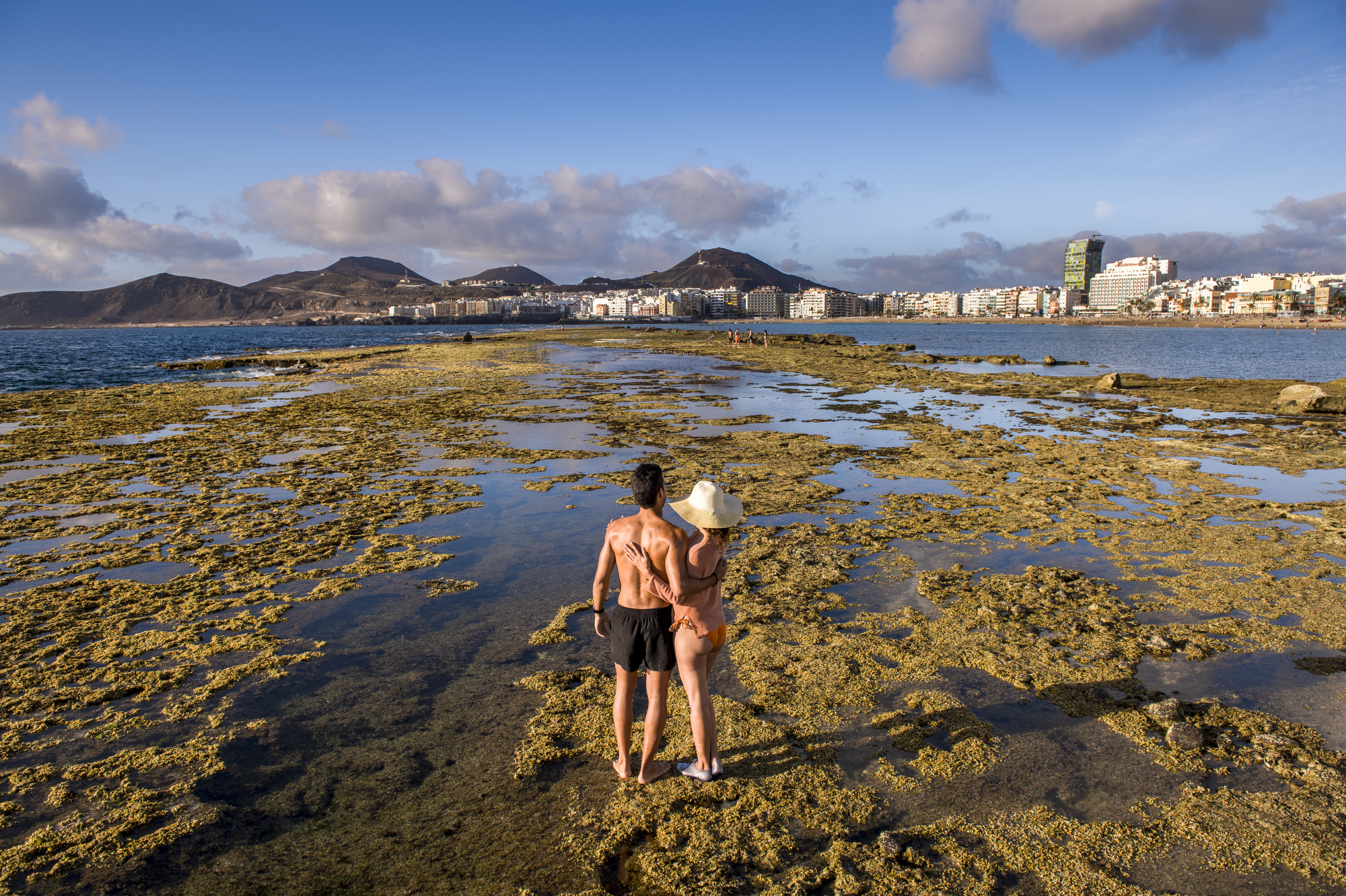 Considerada una de las mejores playas urbanas de Europa, Las Canteras se extiende a lo largo de varios kilómetros de arena dorada, aguas cristalinas. Además, la barrera natural de roca que se extiende a lo largo de parte de la playa, La Barra, permite disfrutar de aguas tranquilas, ideales para el baño seguro de familias y para la práctica de esnórquel, donde se pueden admirar más de cien especies de peces y flora marina.