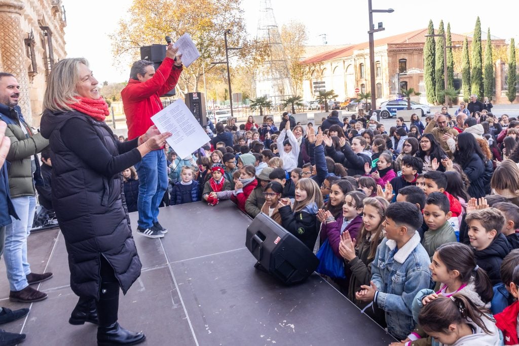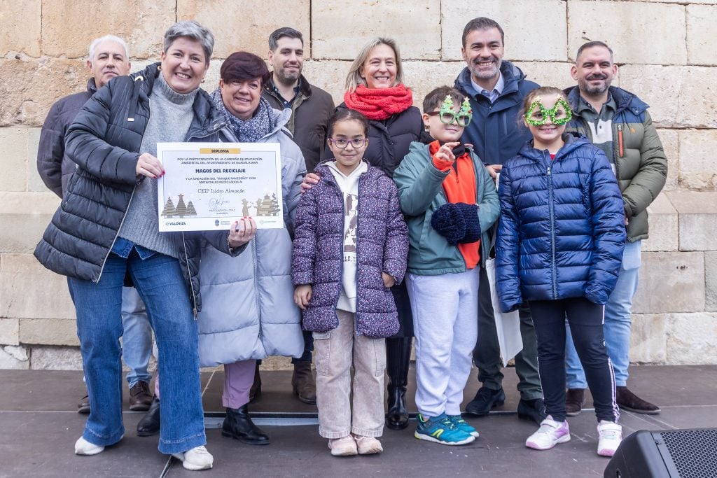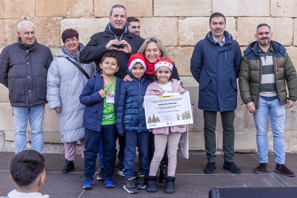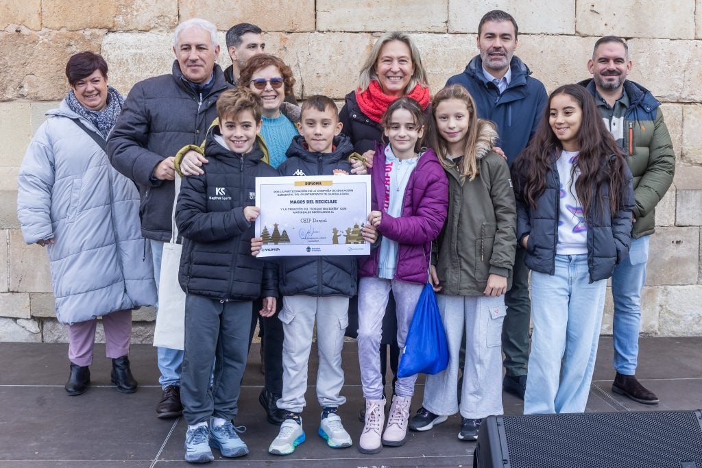 Tras este singular saludo de la alcaldesa, se procedió a la entrega de diplomas y obsequios a los 23 centros participantes, en reconocimiento a su implicación en esta iniciativa sostenible. Posteriormente, todos los escolares entonaron el villancico «Campana sobre campana», creando un ambiente festivo y lleno de ilusión.