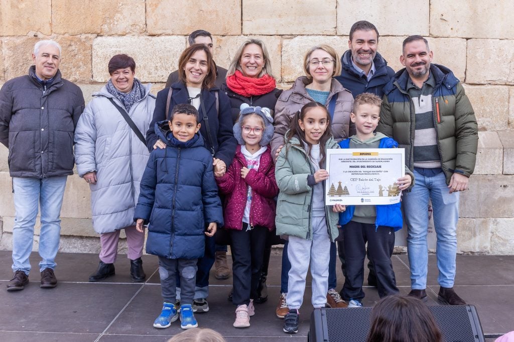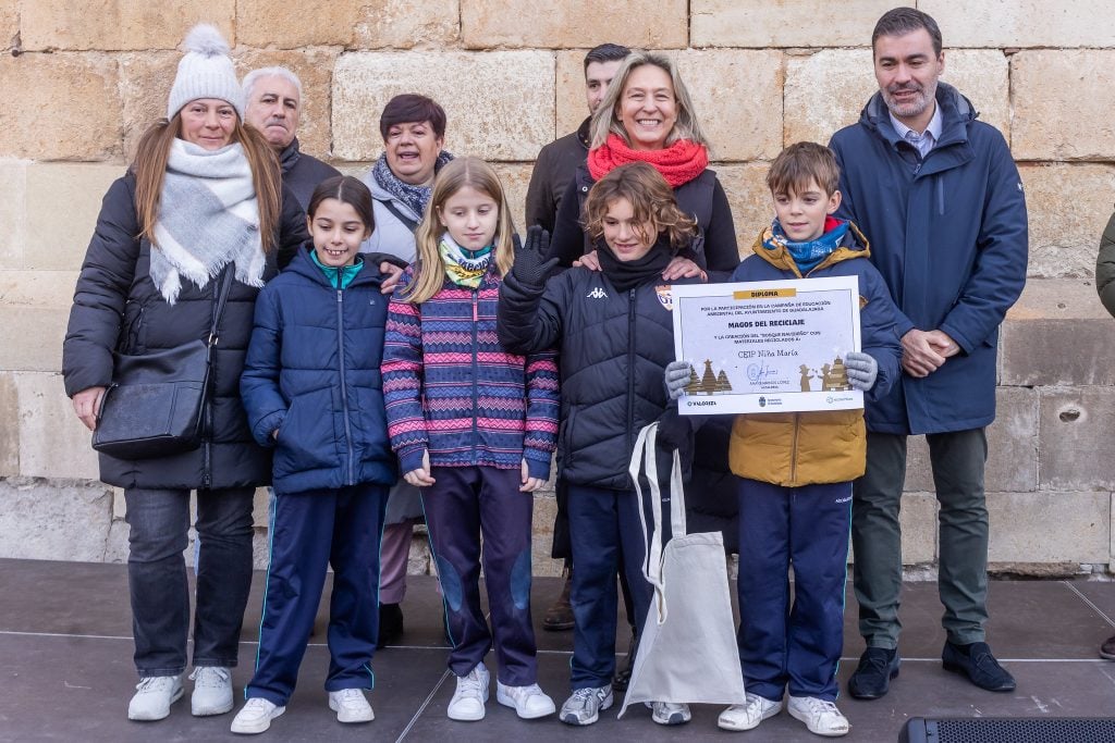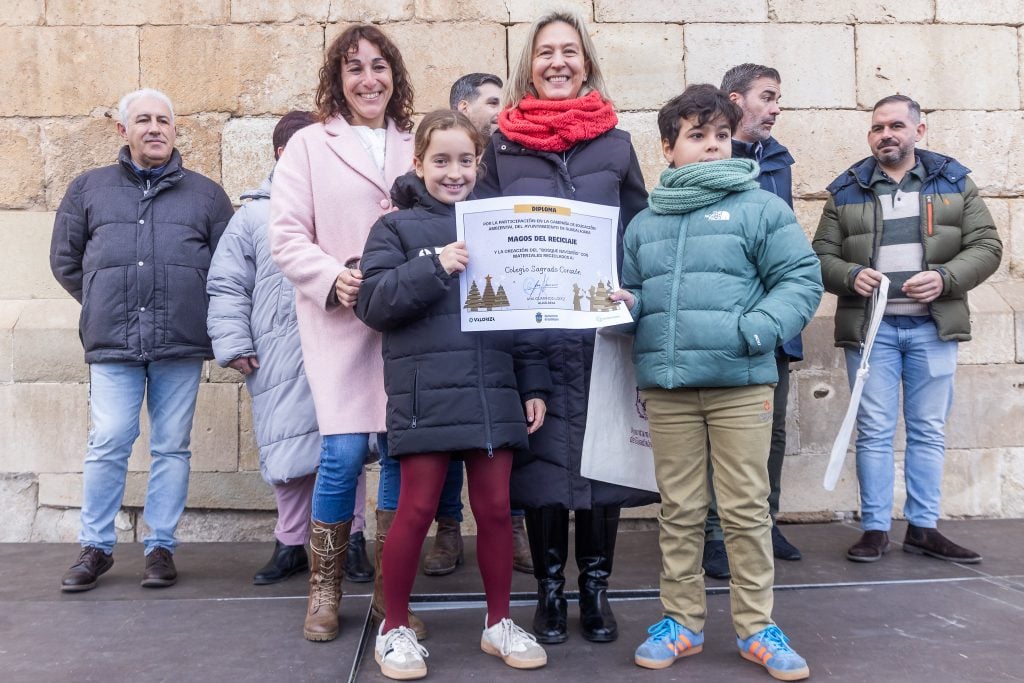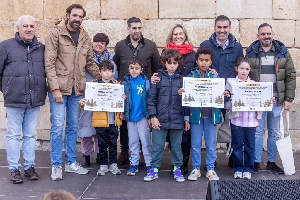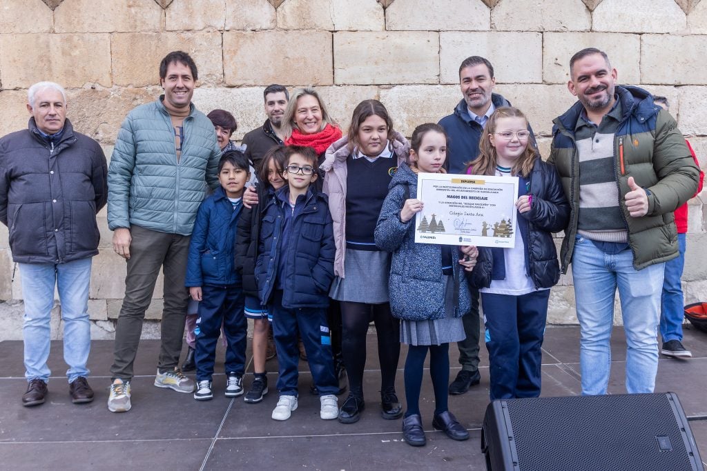 Tras este singular saludo de la alcaldesa, se procedió a la entrega de diplomas y obsequios a los 23 centros participantes, en reconocimiento a su implicación en esta iniciativa sostenible. Posteriormente, todos los escolares entonaron el villancico «Campana sobre campana», creando un ambiente festivo y lleno de ilusión.